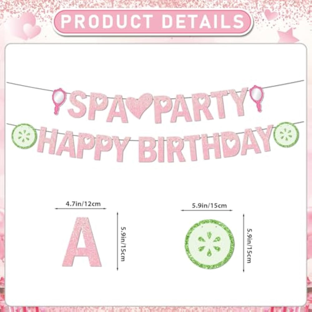 | Girls Spa Birthday Decorations Set: This Kit Includes 1*Spa Party Happy Birthday Banner,6Pcs Spa Party Theme Hanging Swirls,Perfect For Girls Spa Birthday Party Decorations | | Unique And Creative Design: Our Spa Birthday Party Decorations Come With Unique And Fashion Banner And Hanging Swirls Which Add A Dynamic And Festive Touch To The Party And Made Your Spa Birthday Party More Eye-Catching And Funny | | Easy To Assemble:Just Place A Ribbon Through The Hole With The Needle At The Top Of Each Letter Card Stock.Each Swirl Has A Plastic Hook For Hanging.It Will Suprise Everyone And Add A Strong Happy Atmosphere To Your Spa Birthday Party. | | Premium Quality:All Accessories For Spa Birthday Decorations Are Made Of High Quality Materials That Are Both Beautiful And Duarble. You Can Hang It Indoor Or Outdoor. Perfect For Decorating A Memorable Spa Birthday Party | | Worth Buying:These Spa Birthday Decoration Supplies Come With Unique And Funny Design,Made From Premium Quality And Easy To Use,It Is Suitable For The Spa Birthday Party Decorations | |