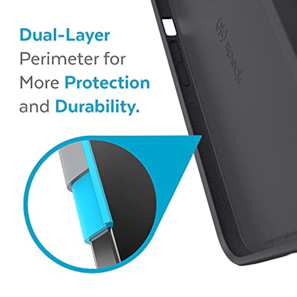 | DROP PROTECTION WITH CAMERA SHIELD - This iPhone 13 case offers exceptional drop protection and shock absorption. It features a raised camera ring designed to keep your lenses protected from scratches and impacts, ensuring your device remains in pristine condition. | | WIRELESS CHARGING COMPATIBILITY - Enjoy the convenience of wireless charging with our MagSafe iPhone 13 case. Its design does not interfere with MagSafe connectivity, allowing for easy and efficient charging without removing the case. | | SECURE GRIP WITH A SOFT TOUCH - Designed for comfort, our case for iPhone 13 provides a secure CandyShell grip with a soft-touch finish that feels great in your hand, reducing the risk of drops while maintaining a sleek and elegant appearance. | | UNIVERSAL COMPATIBILITY - This versatile iPhone case fits all 6.1 inch models including iPhone 13 and other models. Its precision cutouts ensure full access to all ports and buttons for a seamless user experience. | | A RESPECTED COMPANION SINCE 2001 - Speck Products has been a leading name in mobile protection since 2001, offering award-winning mobile phone cases and other tech accessories. Our products are designed to integrate seamlessly into your lifestyle, providing style, function, and premium quality alongside every new phone launch. | |