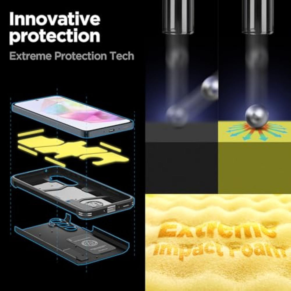 | All-new foam technology for an extra layer of shock resistance | | Combination of TPU and Polycarbonate for dual protection from drops and scratches | | Reinforced kickstand with raised lips to protect screen and camera | | Certified [MIL-STD 810G-516.6] protection and Air Cushion Technology for anti-shock protection | | Galaxy A35 5G Case Compatible with Galaxy A35 5G | |