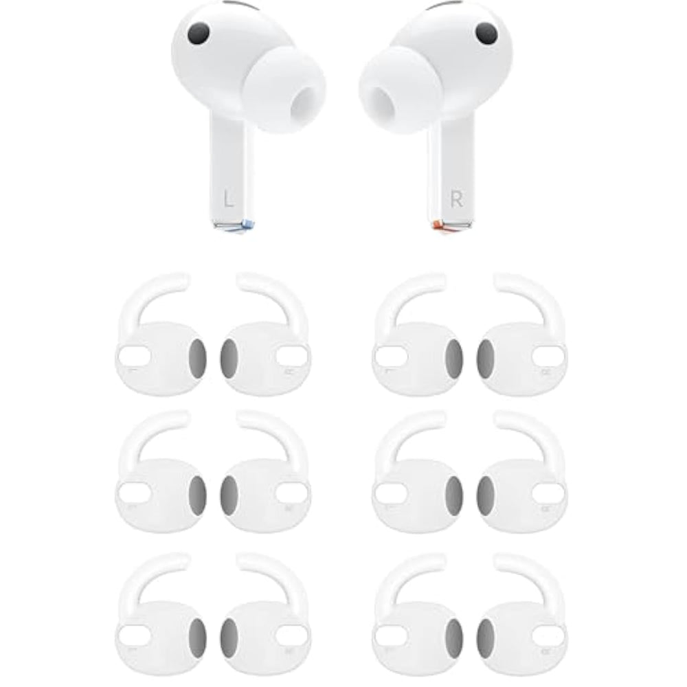 | Compatible With Galaxy Buds 3 Pro Earbuds Sm-R630Nzaexar | | Brand: | | Material: Made Of High Quality Soft Silicone. | | High Quality Silicone Earbuds Hook Tips, Sound Isolating Design Reduces Ambient Noise For High-Intensity Listening. | | Package Includes 6 Pairs Earbuds Hooks | |