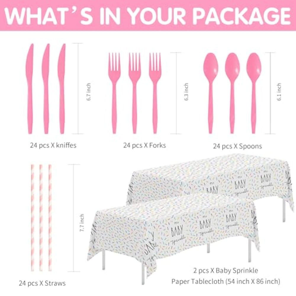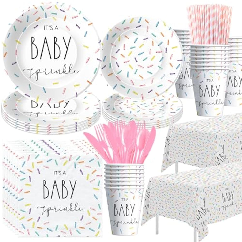 | ?Sprinkle Baby Shower Table Decorations ?Featuring A Charming And Colorful Sprinkle Pattern, This Set Adds A Fun And Festive Touch To Your Baby Shower Decor, Making It Ideal For Gender-Neutral Celebrations | | ?Serve 24 Guests?This Baby Sprinkle Party Supplies Tableware Set Can Accommodate Up To 24 Guests And Includes Everything You Need: 24Pcs 9'' Sprinkle Dinner Plates, 24Pcs 7'' Dessert Plates, 24Pcs Napkins, 24Pcs Cups, 24 Sets Of Disposable Cutlery, 2Pcs Sprinkle Baby Shower Tablecloth | | ?Applicable Occasions?The Gender-Neutral Sprinkle Theme Works Wonderfully For Baby Boys, Baby Girls, Or Gender Reveal Celebrations. Add Festive Charm To Any Setting, From Living Rooms To Backyard Gatherings | | ?Easy To Clean?Enjoy Your Baby Shower With Our Rainbow Candy Sprinkle Decorations For Party Tableware Set —Easy To Use And Dispose Of, So You Can Spend More Time With Loved Ones | | ?Coordinates Beautifully ?This Baby Sprinkle Party Decorations Coordinates Effortlessly With Other Party Decorations Like Balloons, Banners, Photo Props, And Party Favors—Making Your Setup Cohesive And Fun | |
