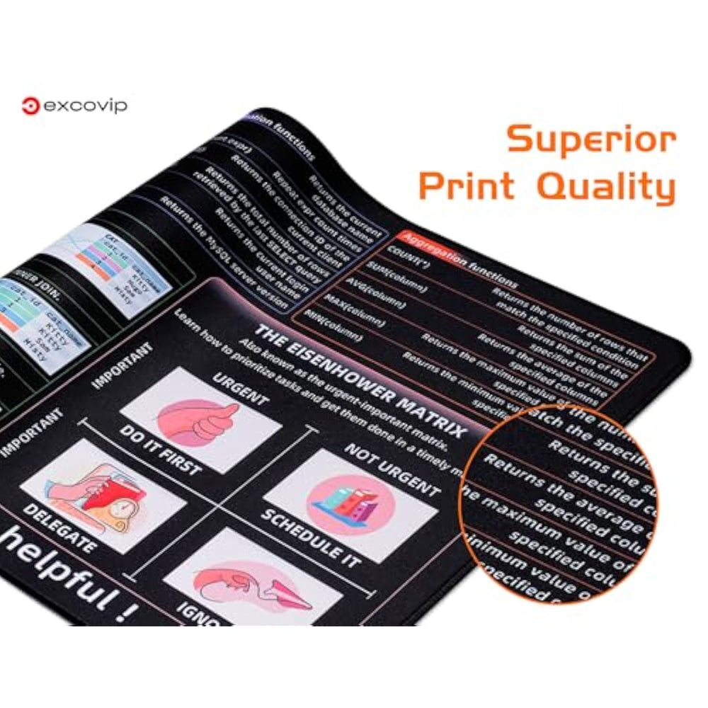 | ?Large Mouse Pad?Our Extra-Large Mouse Pad 31.4×11.8×0.07 Inch(800×300×2 Mm) Is Perfect For Use As A Mosue Mat, Keyboard And Mouse Pad, Or Keyboard Mat, Offering You Unparalleled. | | ?Non-Slip Rubber Base?Unique Anti-Skid Design Rubber Base Provides Heavy Grip, Preventing The Mouse And Keyboard Mat From Random Sliding. This Mouse Padtalso Remains Uniformly Flat On Any Hard Desktop. Just Immerse Into Your Work Or Games, Without Worrying About The Annoying Mouse Pad Movement. | | ?Know Sql And Gain More?The Sql Shortcuts Cheat Sheet Mouse Pad Can Abovisly Improve The User'S Productivity Efficiency. A Special Gift Helping Your Friend, Family And Partner Succeed In School And In Their Career. | | ?Wide Applicability?Package?1 Pack Xl Large Gaming Mouse Pad In Size 900X300, 2Mm Thickness. Perfect Gamer Mouse Pad For Wired/ Wireless Gaming Mouse, Mechanical Keyboard, Laptop And More.If You Meet Any Issues With Our Shortcut Mouse Pad,Please Let Us Know, We Are Always Ready To Help. | | ?Durable-Stitched?The Huge Mouse Pad Equips Durable-Stitched Edges, Which Is Anti-Fray, No Deformation, Preventing Degumming. When Liquid Splashes On The Computer Mouse Pad, Just Clean It With A Piece Of Wet Cloth Wash, Without Fading, Durable For Long Time Using. | |