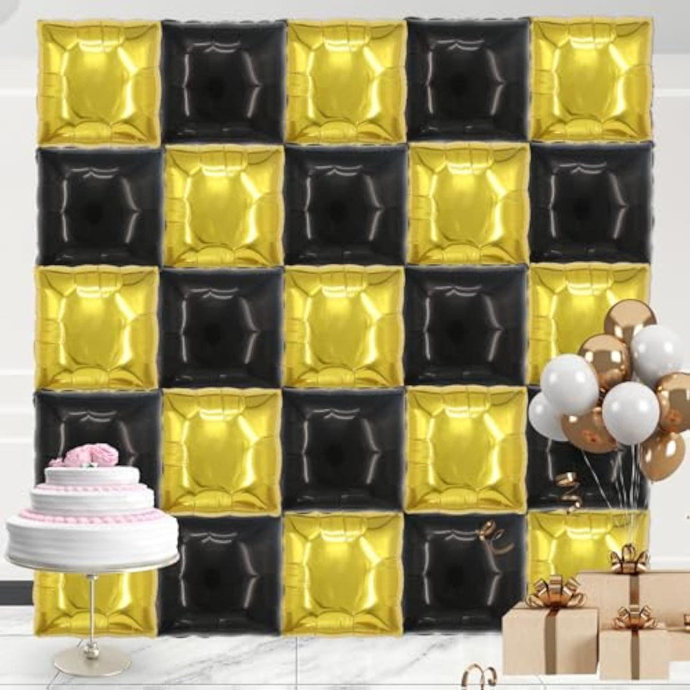 | Elegant Two-Tone Design?This Double-Sided Square Foil Balloon Set Features A Sleek Gold And Black Finish, Crafted From Durable Aluminum Film For A Luxurious Metallic Shine. The 19-Inch Balloons Offer A Sophisticated Look, Perfect For Creating A High-End Backdrop That Stands Out | | Versatile Party Decor?Ideal For Weddings, Anniversaries, Bachelorette Parties, Graduations, And New Year’S Eve, These Balloons Instantly Elevate Your Decor. Use Them As A Photo Backdrop, Balloon Arch, Or Hanging Installation—Perfect For Banquet Halls, Gardens, Or Indoor Celebrations | | Easy Diy Assembly Arrangements?Create A Personalized Balloon Wall Or Tunnel?Simply Inflate To 85% Capacity (Using A Balloon Pump) And Arrange Them In Your Desired Pattern. Mix With Latex Balloons Or Other Decorations For A Fuller, Eye-Catching Display | | Durable Long-Lasting Shine?Made From Thick, Pressure-Resistant Foil, These Balloons Maintain Their Vibrant Color And Glossy Finish Throughout Your Event. Unlike Cheap Balloons, They Resist Punctures And Stay Inflated Longer For All-Day Celebrations | | Safety Tips? For Best Results? 1. Inflate To 85% To Prevent Overexpansion 2.Avoid Direct Heat, Sharp Objects, And Rough Handling 3. Colors May Vary Slightly Under Different Lighting | |