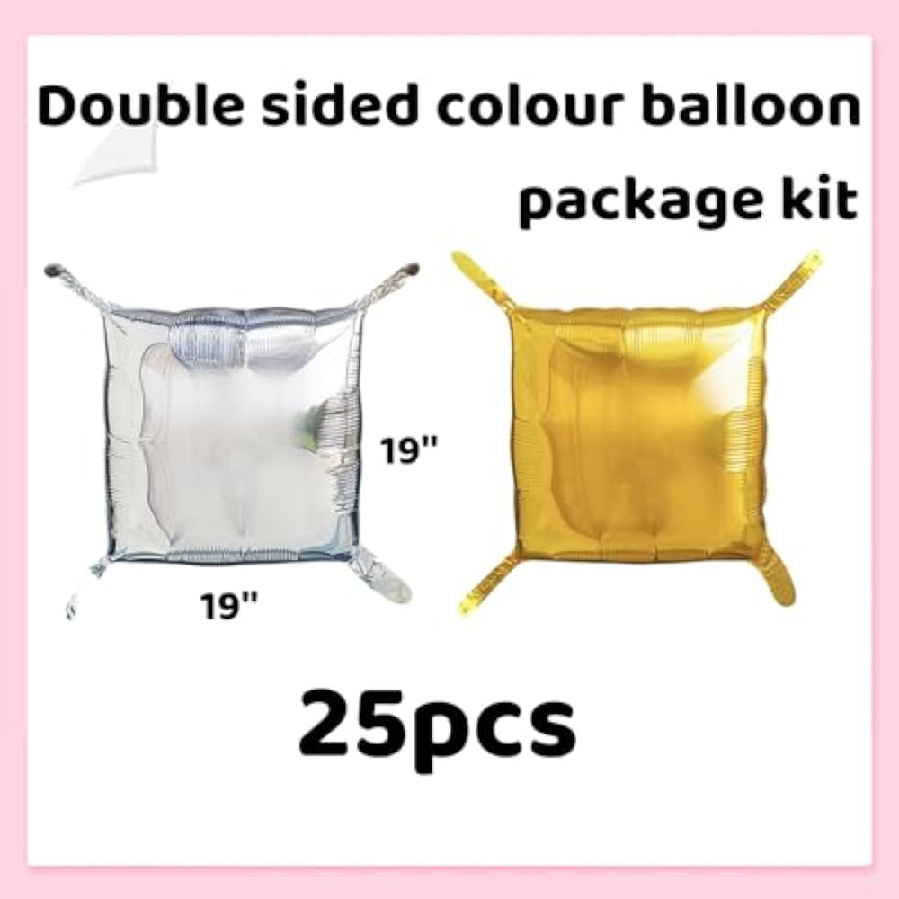 | ?Square Foil Balloon Wall Kit?This Square Flat Aluminium Film Balloon Arch Backdrop Set Is Designed With High Quality Silver Square Aluminium Film Balloons With Double Luxurious Colours.Side Shines In Gold.Side Sparkles With Silver Light. Enhances The Stylish Premium Feel Of The Event.It Also Ensures An All-Round Consistent Décor Suitable For Celebratory Occasions Of All Sizes.From Family Gatherings To Large Banquets. Creates A Rich Visual Effect | | ?High Quality Material?Selection Of High Quality Aluminium Film Material. Strong Silver Reflectivity. It Can Continue To Emit Fascinating Light Even In Different Light Environments. Durable Material. Not Easy To Break. Ensure That The Decorative Effect Lasts As Long As | | ?Easy To Assemble Diy?Easy To Mix And Match Freely And Use Unlimited Creativity To Create A Personalised Celebration Space.Easy To Customise Luxury Silver Party Decorations!Inflate Square Aluminium Foil Balloons With A Balloon Pump.Aluminium Foil Balloons Made Into A Creative Balloon Wall.Decorate This Balloon Wall With Latex Balloons.You Can Easily Finish The Balloon Wall. Choose Multiple Sets Of Balloons To Form A Balloon Tunnel. Tunnel Penetration And Arch Shaping | | ?Widely Applicable Scenarios?Silver Or Gold Square Foil Balloons Can Be Placed In The Living Room Of Your Home. Banquet Hall Or Outdoor Garden.Quickly Create A Party Atmosphere.Not Only Suitable As Baby'S Birthday Party Wedding New Year Christmas Holiday Celebration Business Graduation Event Decoration. Can Also Be Used As Photography Props For Photo Background | | ?Buy With Confidence?Balloons Are Inflated. The Colour Effect Will Fade A Little. Different Lighting Will Also Make The Balloon Arch Look Different. Do Not Inflate More Than 85% . Care Should Also Be Taken To Avoid Heat. Sharp Objects And Friction.If You Find Any Problems With Our Balloon Kits.We Will Solve It For You Promptly | |
