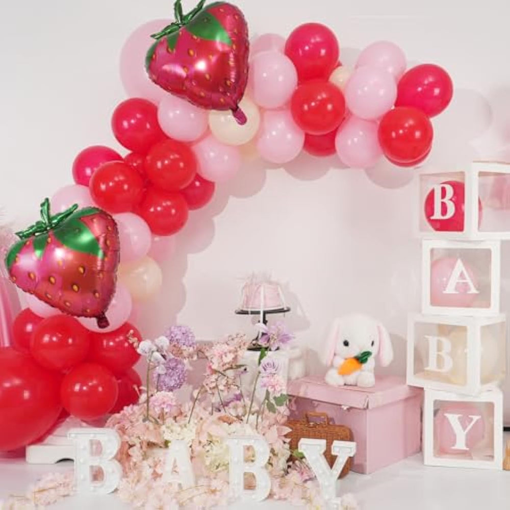 | Strawberry Fruit Theme Design:This Strawberry Baby Shower Decorations Brightly Colored Fruits And Contains: You Will Get 46 X Pastel Pink Balloons(5+10+18Inch), 46 X Red Balloons(5+10+18Inch), 20 X Ivory White Balloons(5+10Inch), 20 X White Green(5+10Inch), 10 X Nude(10Inch), 2 Strawberry Foil Balloons, 1 Balloon Chain,1 Ribbon And 3 Glue Points; Whether Decorating Your Party Backdrop Or As Decorations, Berry Sweet Baby Shower Decorations Will Add A Tropical Touch To Your Event. | | Quality Balloon Material:Red A Berry Sweet Baby Is On The Way Decorations Is Made Of Quality Material To Ensure Durability And Not Easy To Break, Suitable For Long Time Display. Whether Indoors Or Outdoors, Strawberry 1St Birthday Decorations Will Remain Intact And New, Adding Endless Life To Your Party. | | Easy To Install And Convenient To Use: Red Strawberry Balloon Arch Are Simple In Design And The Installation Process Is Quick And Easy. Just String Strawberry Baby Shower Decorations Together In Sequence, Then You Can Quickly Complete The Decoration, Suitable For All Kinds Of Party Planners, No Additional Tools, Easy To Create The Decoration Effect You Want. | | Multifunctional Decoration :Red Starwberry Decorations Is Perfect For Birthday Parties, Summer Gatherings, Children'S Parties, Weddings, Graduation Ceremonies And Many Other Occasions. Red Berry Decorations Not Only Adds Color To Your Event, But Also Brings Vivid Colors To The Background Of Your Photos, Making Every Moment Full Of Joy. | | Caution: When Using The Fruit Balloon Arch, Please Make Sure The Balloon Is Away From Sharp Objects And Avoid Over-Inflation To Avoid Rupture. The Balloons Should Not Be Exposed To Sunlight For A Long Time, Excessive Temperature May Accelerate Aging. For Safety Reasons.Debris Should Be Cleaned Up Promptly After Breakage To Prevent Injury. | |