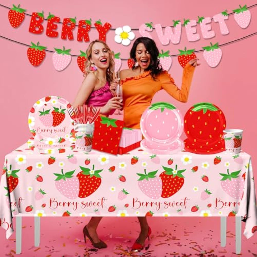 | What You Can Get: You Will Get Strawberry Party Plates Serves For 20 Guests. Packing Include 1Pcs Strawberry Table Cloth, 20Pcs 9Inch Strawberry Paper Plates, 20Pcs 7Inch Dessert Plates, 1Pcs Berry First Birthday Banner, 40Pcs Napkins, 20 Pairs Of Knives And Forks, 20Pcs Cups.The Complete Strawberry Party Supplies Provides You With A Perfect And Sweet Gathering Experience | | Premium Quality: All Our Berry Sweet Plates And Napkins Are Made Of High Quality Paper,Portable And Kids Safe.The Berry Tablecloth Is Made Of High-Quality Pe Plastic Material,Which Can Keep Your Table Clean And Protect Your Table From Scratches Well.The Patterns And Colors Are Beautifully Printed And Fade Resistant To Make Your Party Full Of Strawberry Party Atmosphere Like A Berry Sweet Baby Is On The Way | | Easy To Clean: This Disposable Strawberry Birthday Decorations Tableware Sets Can Reduce Your Clean-Up Time.You Can Throw Them Away When You Clean Up After An Event Or Party, Which Is Very Convenient And You Can Spend More Time With Friends And Family, Saving You Time | | Widely Used: Strawberry Party Decorations Are Suitable For Many Occasions Like Indoor Or Outdoor Strawberry Party Decorations,Berry First Birthday Decorations,My Berry First Birthday Decorations,Strawberry 1St Birthday Decorations,Berry Sweet One Birthday Party Decorations,Strawberry Shortcake Party Decorations,Strawberry Baby Shower Decorations,Fruit Theme Party | |