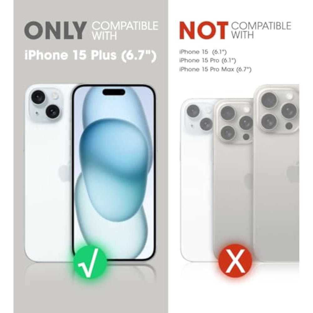 | [Compatible with MagSafe]: Compatible with MagSafe and Most Other Wireless Chargers. It also works with MagSafe car mount to make navigation more convenient while driving. | | [Built-in screen protector]: Built-in screen protector prevents scratches without compromising touch sensitivity. | | [Rotatable Belt-Clip]: Detachable swiveling belt clip for convenient, hands-free, pocket-free carrying. | | [Kickstand Feature]: Built-in Kickstand provides the best viewing angle. | | [Compatibility]: Compatible with iPhone 15 Plus 6.7 inch (2023 Release) ONLY. | |