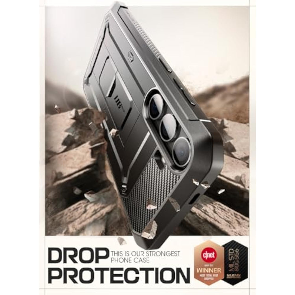 | [2 Front Frames]: Our Galaxy S24 Phone Case includes two front frames. One with a built-in screen protector, the other without a built in screen protector. Choose the one you prefer. | | [Rotatable Belt-Clip]: Experience user-friendly convenience with an included detachable rotating Belt-Clip. | | [Precise Cutouts]: Easy access to all ports, buttons and features, thanks to the exact design of the UB Pro. | | [20 Feet Drop Test]: This Samsung S24 Case is made of multi-layer TPU and polycarbonate materials for ultimate drop protection. | | [Compatibility]: Compatible with Samsung Galaxy S24 6.2 inch (2024 release). Not suitable for Galaxy s24 Plus, Galaxy s24 Ultra. | |