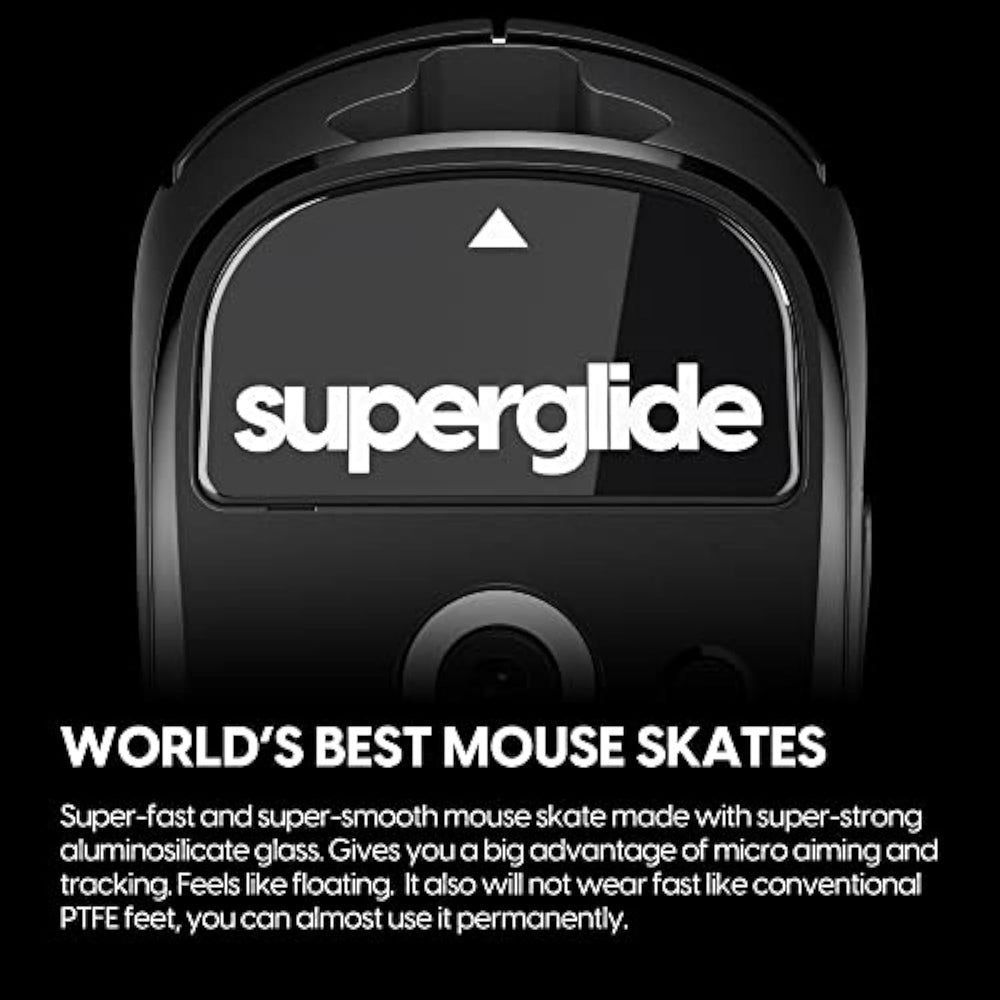 | Super Fast - Super Smooth Polished Surface Mouse Skate Made With Aluminosilicate Glass Gives You A Big Advantage Of Micro Aiming And Tracking. | | Super Durable - Super Strong Tempered Glass Will Not Wear Fast Like Conventional Ptfe Feet, You Can Almost Use It Permanently. | | Round Edge - Flawlessly Polished Super Smooth Round Edge Will Provide You Smoothest Glide Ever. | | Esports Grade - Superglide Is Perfect For Pro Esports Grade Accuracy. | | Not Recommended For Use With Glass Mous Pads. | | Not Compatible With G Pro X Superlight 2 And Superlight 2 Dex | |