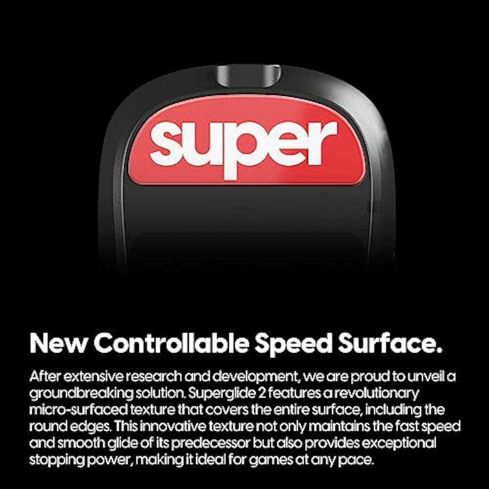 | New Controllable Surface - Revolutionary Micro-Surfaced Texture For Speed, Smooth Glide, And Exceptional Stopping Power. Perfect For Games At Any Pace. | | Super Durable - Super Strong Tempered Glass Will Not Wear Fast Like Conventional Ptfe Feet, You Can Almost Use It Permanently. | | Round Edge - Perfectly Polished Super Smooth Round Edge Will Provide You Smoothest Glide Ever. | | Do Not Recommend Use With Glass Mouse Pads. | | *Note. Superglide2 Does Not Offer The Same Level Of Low Friction As Superglide1. Those Who Are Accustomed To Superglide1 May Perceive Superglide2 As Comparatively Slower. | |