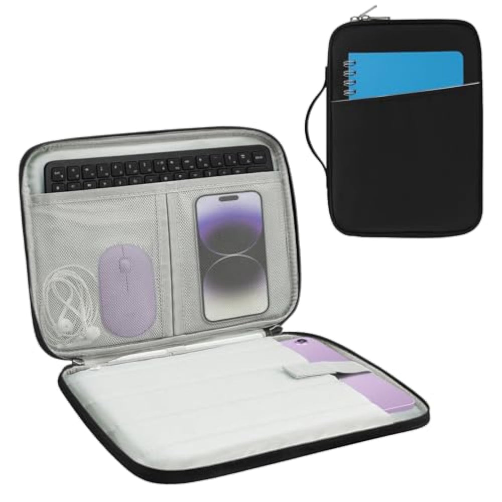 | ?Fits Most 12–13" Tablets And Ipads?Designed To Fit A Wide Range Of 12–13 Inch Tablets, Compatible With Ipad Pro M4/M2/M1 , Ipad Air M2, Surface Pro 9/8/7, Galaxy Tab S9+/S8+, And Other 12–13" Tablets. | | ?Multi-Pocket Organizer For Essentials?Features A Portfolio-Style Layout With 2 Mesh Pockets And 1 Large Padded Compartment—Ideal For Storing Your Charger, Cables, Stylus, Mouse, Power Bank, And More Tech Accessories. | | ? Built-In Handle Extra Front Pocket?Features A Durable Top Handle For Grab-And-Go Use. The Front Zippered Pocket Adds Extra Storage For Notebooks Or Other Quick-Access Essentials—Great For Work, School, Or Travel. | | ? Protective Travel-Ready Build?Crafted From Durable, Water-Resistant Fabric And Lined With Soft, Shock-Absorbing Padding That Gently Cushions Your Tablet From Bumps, Drops, Or Scratches. The Soft Inner Lining Helps Prevent Screen Scuffs—Even When You'Re Carrying Your Device Alongside Accessories. Whether You'Re Commuting To Work, Traveling For Business, Or Heading To A Cafe, This Sleeve Keeps Your Tech Safe, Stylish, And Ready To Go. | | ? Lightweight Portable Design?Slim And Compact, This Tablet Case Can Be Easily Slid Into Your Backpack, Tote, Or Luggage. A Built-In Hand Strap Adds Convenience For Handheld Carry In Daily Commutes Or Meetings. | |