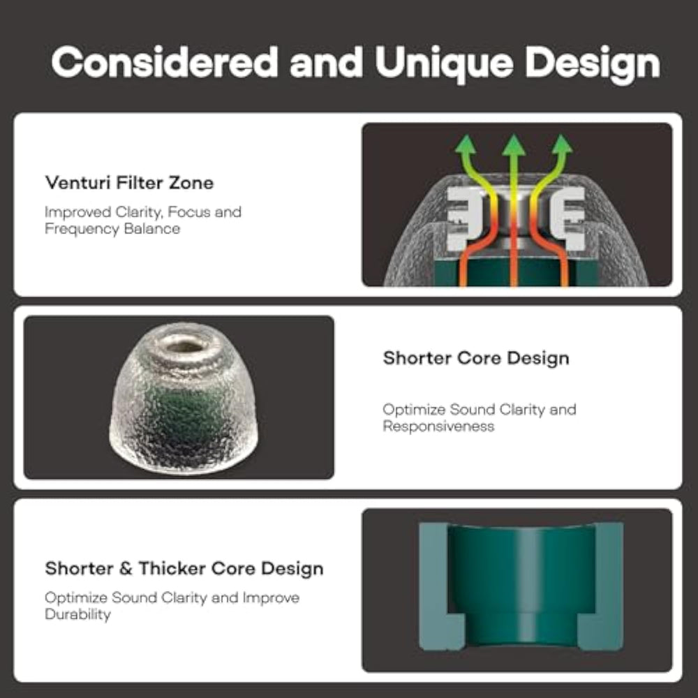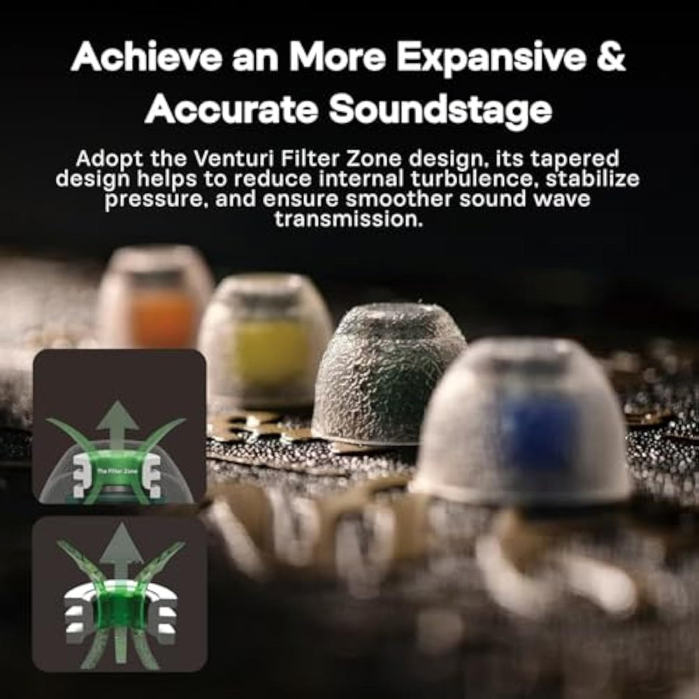 | ?????????????????? ?????????? ??????????????: Tang Sancai Noble Represents A Fusion Of Precision Acoustics And Luxurious Comfort. Designed Around A Venturi-Inspired Stainless Steel Nozzle System, These Premium Liquid Silicone Eartips Deliver Optimized Airflow, Reduced Distortion, And A Balanced Sound Signature Across All Frequencies. Whether You'Re An Audiophile Or Everyday Listener, The Noble Edition Brings Professional-Grade Acoustic Refinement Into Your Personal Listening Experience. | | ?????????????? ???????????? ????????: The Design Core Of Tang Sancai Noble Earbud Tips Is The Venturi Filter Zone—A Stainless Steel Nozzle That Mimics The Natural Airflow Control Of A Venturi Tube. Its Tapered Geometry Reduces Internal Turbulence And Stabilizes Pressure, Allowing For Smoother Sound Wave Travel To Your Ears. The Result: Crisper Highs, Tighter Lows, And A More Accurate, Spatial Soundstage. The Inherent Rigidity Of Stainless Steel Further Reduces Unwanted Resonance, Enhancing Sonic Clarity. | | ???????????????? ???????????????? ?????????????? ?????? ?????? ??????????????????: The Surface Pattern On The Outer Edge Of The Tang Sancai Noble Eartips Isn’T Just Decorative—It Serves A Functional Role In Passive Pressure Relief, Eg The Strain Of Long Sessions While Anchoring The Eartips Securely In The Ear Canal. The Design Creates A Comfortable, Stable Seal That Prevents Slippage And Improves Passive Isolation. | | ?????????????????? ???????????????? ???????? ?????? ???????????????? ????????????????: The Venturi Bore Features A Variable Diameter That Narrows And Expands Strategi