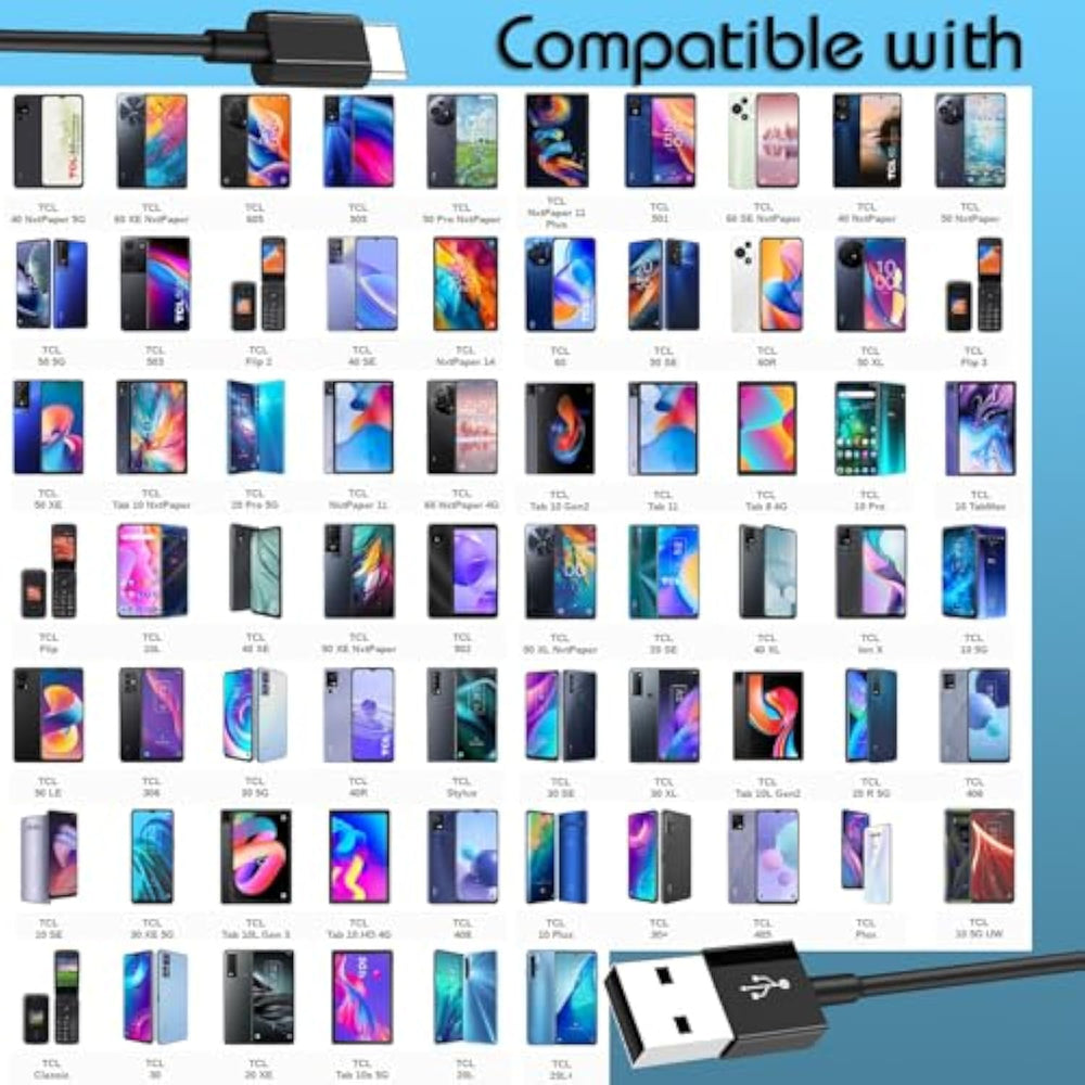| [Compatible With] Tcl 60 Xe Nxtpaper / 60 Se Nxtpaper / 60 Nxtpaper 4G / 60 / 60R / 605 / 505 / 503 / 502 / 501 / 408 / 406 / 405 / 306 / 50 Xl Nxtpaper / 50 Xl / 50 Xe Nxtpaper / 50 Xe / 50 Se / 50 Nxtpaper / 50 Pro Nxtpaper / 50 Le / 50 / 40 Nxtpaper / 40 Se / 40 Xe / 40 Xl / 40R / 30 Xe 5G / 30 Xl / 30+ / 30 Se / 30 / 20L+ / 20L / 20 Xe / 20 Se / 20R 5G / 20 Pro 5G / 10 Tabmax / 10L / 10 Se / 10 Pro / 10 Plus / 10 / Tab 8 4G / Tab 10S 5G / Tab 10L Gen2 / Tab 10L Gen3 / Tab 10 Hd 4G / Tab 10 Gen2 / Tab 11 / Stylus / Plex / Nxtpaper 14 / Nxtpaper 11 / Nxtpaper 11 Plus / Nxtpaper 10 / Ion X / Flip 3 / Flip 2 / Flip / Classic. | | [Plug And Play] Charger Block Output:5V 2A Input:100-240V 50-60Hz,Compatible With Electronic Devices Supporting 500Ma ~ 2000Ma, Great Performance Ensures Your Devices Syncs And Charge Simultaneously With Up To 480Mb/S Transferring Speed. | | [Travel Essentials] 5Ft Usb A To Usb C Cable Make Charging More Convenient And Fast. Compact And Portable Design, Convenient For Travelers And Most People To Take It Anytime, Anywhere. | | [What You Get] 1 × 5V 2A Power Adapter; 1 × 5Ft Usb-A To Usb-C Charging Cable. | | [Quality Service] We Focus On Better Products To Give