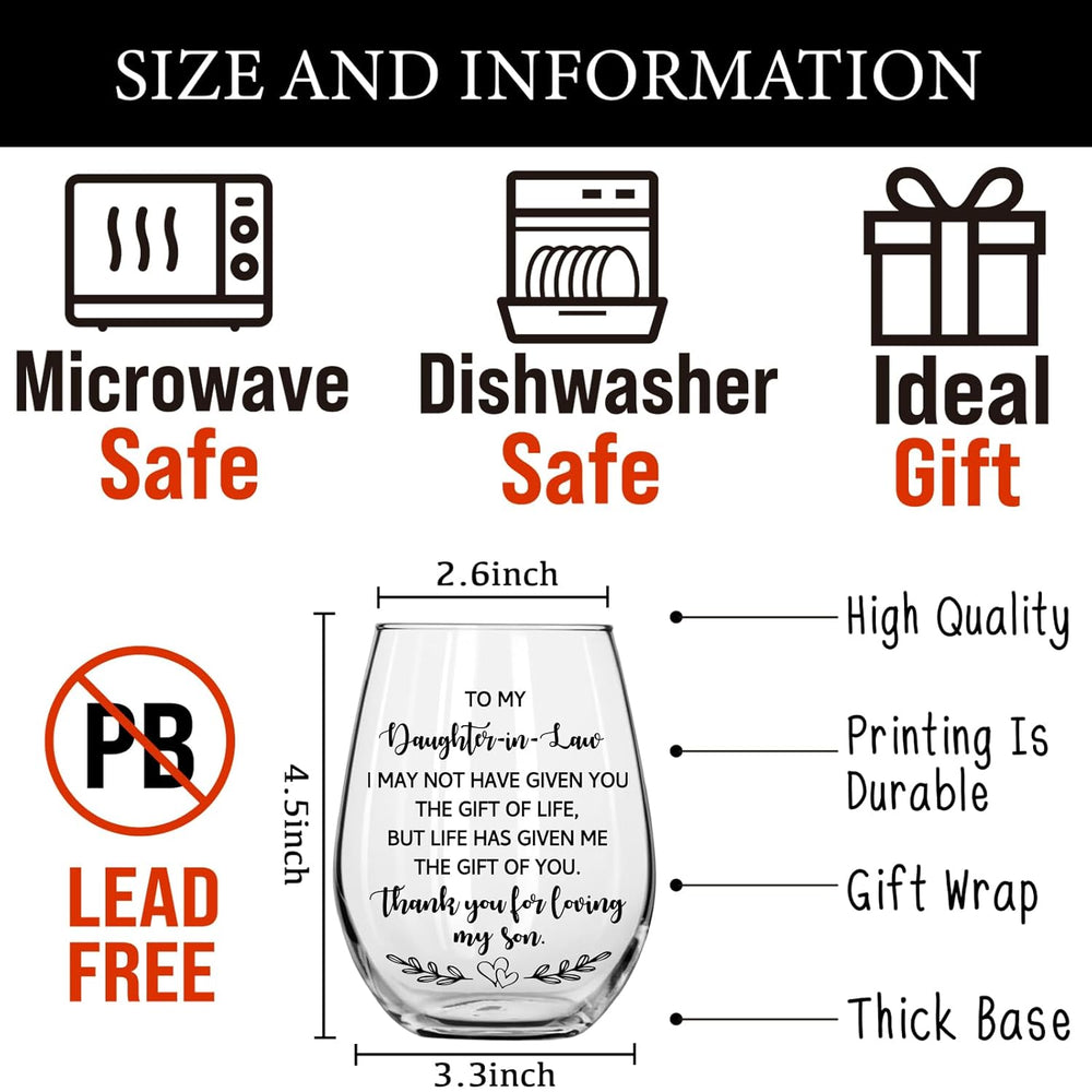 | Fun Wine Glass Gifts: This Stemless Wine Glass Can Be Given As A Meaningful And Loving Gift To Anyone Who You Loved In Any Scene. This Is More Than A Glass - It’S An Emotional Connection. And It'S Best Choice For Lawn Parties Or Banquet. It'S Chosen As Birthday Mother’S Day Father'S Day Thanksgiving Day Christmas Gifts. | | Safe Packaging: All Are Securely Packaged In Our Exquisite Gift Box, With Customized Pearl Cotton Bubble Bags For Protection. Perfect For Sending Directly To The Gift. | | High-Quality Materials: The Stemless Wine Glass Made In The Thick Glass, Smooth Rim. Durable Construction Ensures Long-Lasting Use. Adopts A Narrow Opening With A Wide Bottom Design, Effectively Preventing Overflow, Enhancing Stability And Easy To Hold. The Whisky Glass Is Made Of Safe Lead-Free Glass With A Thick Base And Smooth Edge Design With A Straight Up And Straight Down Shape. | | Microwave Secure Are Safe: Microwave Secure Are Safe And It Is Best To Use Hand To Wash The Glass. | | Size Information:The Cup Has A Capacity Of 15 Ounces(425Ml), Dimensions: 11.4*6.6*8.3Cm, Very Suitable Capacity Is Enough For You To Enjoy A Glass Of Wine, Cocktail Or Any Drink You Like In Your Daily Life. | |