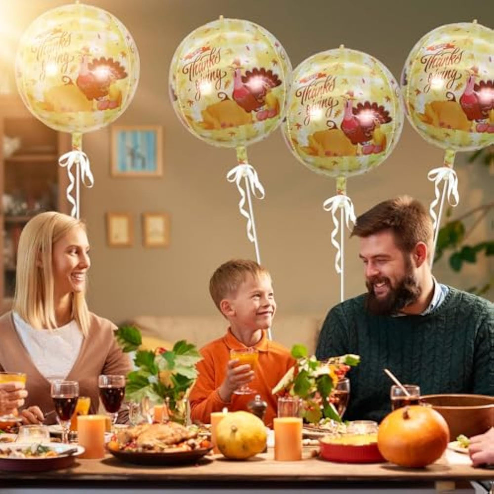 This set includes 10 22-inch 4D fall-themed balloons with turkeys, pumpkins, and maple leaves, along with a straw and long ribbon for easy inflation and display. Made from durable, reusable aluminum foil, the balloons are thick, resistant to bursting, and feature double-sided, vibrant designs. Self-sealing for hassle-free setup, they can be filled with helium to float or air for stationary décor. Perfect for Thanksgiving and fall celebrations, these balloons add festive color and a warm autumnal atmosphere to parties, indoor décor, or family gatherings.