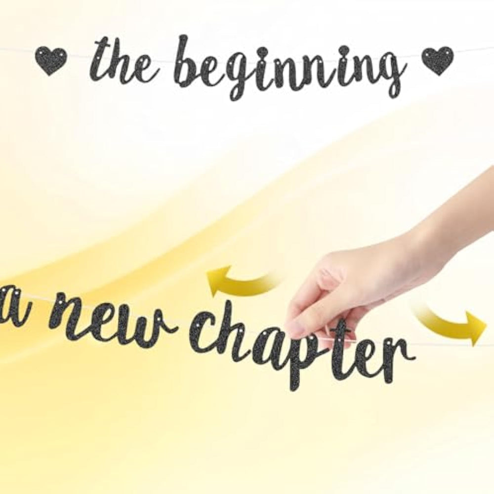 | Package Content: You Will Receive 1 Set Of The Beginning Of A New Chapter Banner In Black, Perfect For Retirement Party, Graduation And House Warming. | | Premium Material: Our Farewell Party Banner Is Made Of Premium Glitter Paper, Lightweight And Easy To Hang, Reusable And You Can Use It With A Confidence. | | Easy To Install: No Diy Required, Just Hang It Up, It Won’T Take Up Much Of Your Time, It’S Simple And Convenient. | | Perfect Decoration: This Glitter Banner Is Charming And Attractive, Perfect For Hanging On Door, Wall, Porches, Escalators, Ceilings, Dessert Tables, Etc. | | Wide Application: Great For Retirement Party, Graduation Ceremony, Farewell, Resignation, Housewarming, Etc. Create A Warm And Pleasant Atmosphere. | |