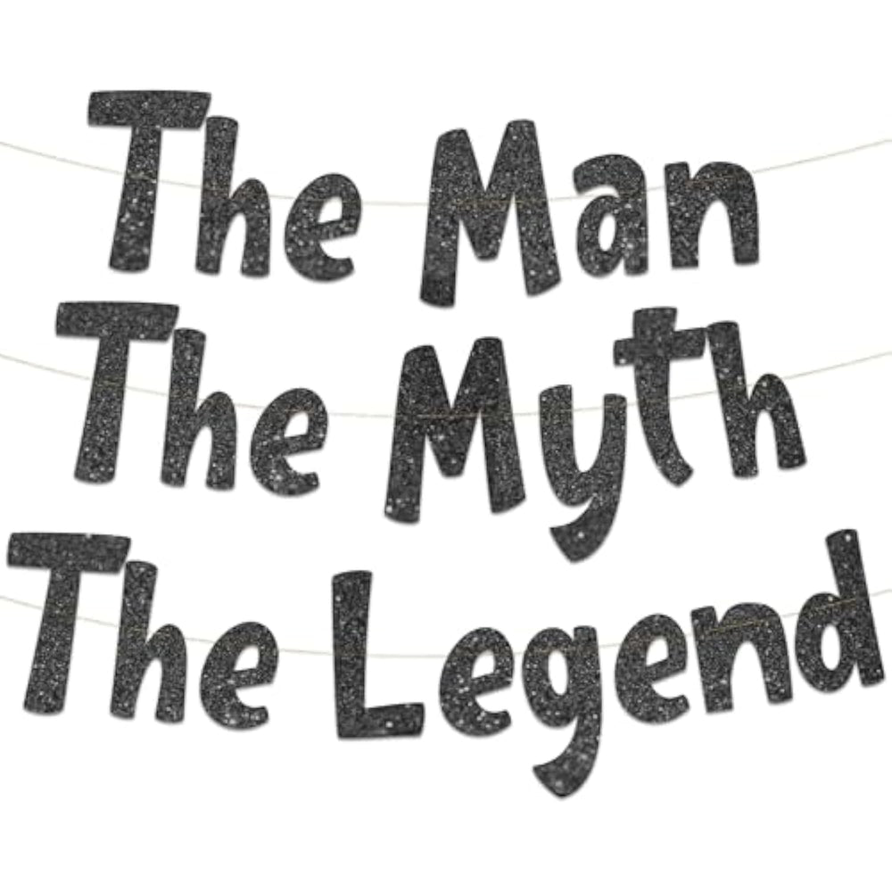 | Banner Comes Pre-Strung | | Birthdays, Bachelor Parties, And Retirements Are A Long Awaited Milestones And What Better Way To Celebrate Than With Our Premium Quality " The Man The Myth The Legend " Black Glitter Banner. | | Size: Banner Is Petite And Measures Approximately 4.5 Feet. First Great Above A Dessert Table Or Fireplace Mantle. | | Quality: The Beautiful, Black Glitter Accents Matches The High Quality Lettering And Will Definitely Catch The Attention Of Your Loved Ones When They Shimmer In The Light. Our Retirement Party Decorations Are Sturdy But Not Heavy And Mean To Be Reused. | |