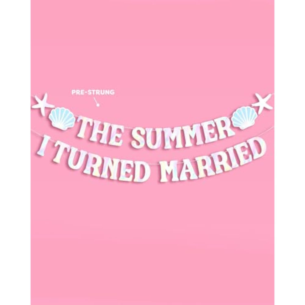 | Bride To Be: Our Iridescent Foil "The Summer I Turned Married" Banner Is The Party Addition You'Ve Been Looking For + A Hit! | | Foil Details: This Banner Features Shimmering Text And Iridescent Starfish And Seashell Icons - Think Super Fun + Shiny! The Finish Feels Very Luxe + The Perfect Compliment To Your Event :) | | For That Special Day: One Size Fits All! Perfect For Any Proposal, Engagement Party, Bachelorette Or Bridal Shower! | | Ready To Party: This Banner Is Pre-Strung On Two Silver Strings And Ready For Action! One String Features "The Summer" Between Starfish And Seashell Icons + The Other Has "I Turned Married." Banner Spans 6 Feet. | |