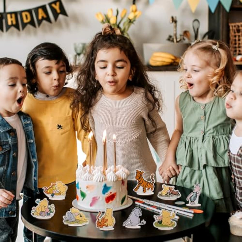 | Package Contents: Set Of 12 Wooden Table Centerpieces Featuring The Bear And Friends Characters, Perfect For Party Decorations And Special Occasions | | Design Style: Watercolor-Inspired Artwork With Soft, Natural Colors Showcasing Various Poses Of Beloved Storybook Characters | | Material Construction: Each Decorative Piece Is Carefully Carved And Mounted On Individual Wooden Bases For Stability | | Versatile Use: Ideal For Birthday Parties, Baby Showers, Or As Charming Home Decor Pieces That Add A Whimsical Touch | | Presentation: Harmoniously Arranged Collection With Balanced Composition And Coordinated Color Schemes For A Cohesive Display | |