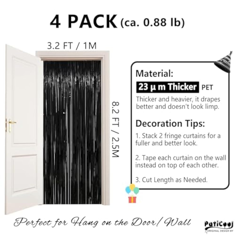 | Plastic | | ??????? ?????????????? | ???????? ???????????? - This Black Glitter Tinsel Backdrop Is Made Of 23?m Plastic Film, Not Easy To Fall Apart. But Due To The Inherent Characteristics Of The Material, It Is Still Easy To Tear Even If We Use Thicker Material, So You Need To Be Very Careful When Using It. | | ??.?? ?? ??.?? ???? | ?? ???????? - This Black Metallic Streamers Are Long Enough To Decorate Doors Or Walls, You Can Freely Adjust The Length, Width And Thickness Of Them According To The Desired Scene. Paste Them Side By Side For A Wider Range Of Decoration, Stack 2 Or More To Achieve A Thicker And Denser Effect. | | ???????? ???? ?????? - Just Peel Off The Double Sided Adhesive Sticker On The Back Of The Foil Fringe Curtains And Stick It To A Smooth Surface, Press It With Your Hands For About 5 Seconds So It Stays Longer. It Is Not Recommended To Use It On Painted Walls Or Uneven Surfaces. | | ?????????? ???????????????? ???????????????? - Perfect For Birthday, Graduation, Prom, Halloween, Retirement, Bachelor, Gamer, Cholo Party Decorations, And Any Other Events You Want To Decorate. | | ?????? ?????????? - This Black Backdrop Curtains Can Be Used With Balloons, Banners, Led Light And Various Photo Props, Or Use It With Other Tinsel Backdrop Of Different Colors To Achieve The Color Combination That You Desired! | |