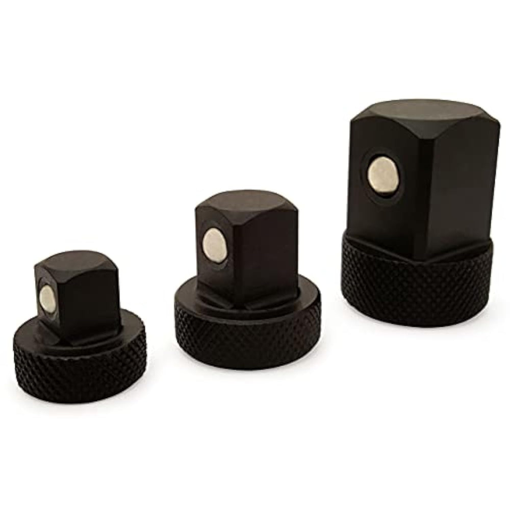 | Set of 3 impact grade chrome moly socket adapters | | (1) 1/4" Female to 3/8" Male | | (1) 3/8" Female to 1/2" Male | | (1) 1/2" Female to 3/4" Male | | Detent ball design for secure socket retention | |