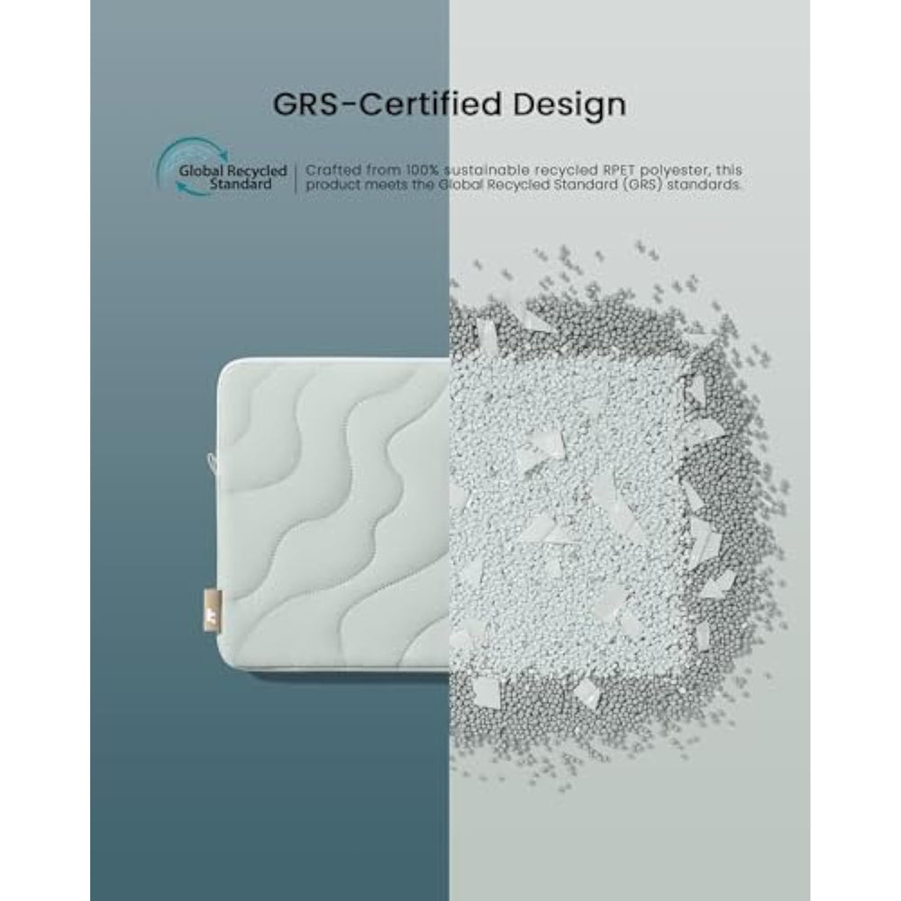 | Terra Elegance: Crafted from recycled materials, this puffer laptop sleeve combines elegance with sustainability. Its distinctive contour line design creates timeless aesthetics, perfectly tailored to embrace your cherished MacBook | | Highly Sustainable Innovative: Made from innovative 100% recycled fabrics, the Terra-A27 Laptop Sleeve is robust and dedicated to our planet's preservation. From its recycled nylon exterior to the trusted strength of YKK NATULON Plus Sustainable Zippers, every detail is meticulously chosen. Every element, from its sustainable fabric to its recycled ribbon woven label, reflects our commitment to saving our planet | | Puffy Tenderness Durability: Imagine your device enveloped in our quilted design sleeve, crafted with a puff-like softness yet firm in structure. This sleeve, resembling a plush cushion, offers your tech the perfect blend of tenderness and robust protection. It slides smoothly into larger bags, always holding its shape, and provides a snug, secure fit for your device. Experience the unique combination of tenderness and durability | | Superior Laptop Protection: Equipped with CornerArmor X4 Technology, this puffy laptop sleeve ensures your MacBook is protected from the toughest situations, and durable enough to combat falls or shocks on your way. The blend of eco-friendly polyester cotton fabric with a super-soft velvet inner lining emphasizes the sleeve's resilience, offering unparalleled safety for your device with Earth's tender song | | Compatibility: Get a 12-month worry-free , friendly and timely