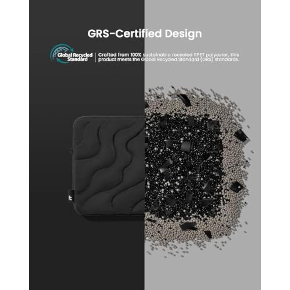 | Terra Elegance: Crafted from recycled materials, this puffer laptop sleeve combines elegance with sustainability. Its distinctive contour line design creates timeless aesthetics, perfectly tailored to embrace your cherished MacBook | | Highly Sustainable Innovative: Made from innovative 100% recycled fabrics, the Terra-A27 Laptop Sleeve is robust and dedicated to our planet's preservation. From its recycled nylon exterior to the trusted strength of YKK NATULON Plus Sustainable Zippers, every detail is meticulously chosen. Every element, from its sustainable fabric to its recycled ribbon woven label, reflects our commitment to saving our planet | | Puffy Tenderness Durability: Imagine your device enveloped in our quilted design sleeve, crafted with a puff-like softness yet firm in structure. This sleeve, resembling a plush cushion, offers your tech the perfect blend of tenderness and robust protection. It slides smoothly into larger bags, always holding its shape, and provides a snug, secure fit for your device. Experience the unique combination of tenderness and durability | | Superior Laptop Protection: Equipped with CornerArmor X4 Technology, this puffy laptop sleeve ensures your MacBook is protected from the toughest situations, and durable enough to combat falls or shocks on your way. The blend of eco-friendly polyester cotton fabric with a super-soft velvet inner lining emphasizes the sleeve's resilience, offering unparalleled safety for your device with Earth's tender song | | Compatibility: You can get a 12-month worry-free , friendly and timely