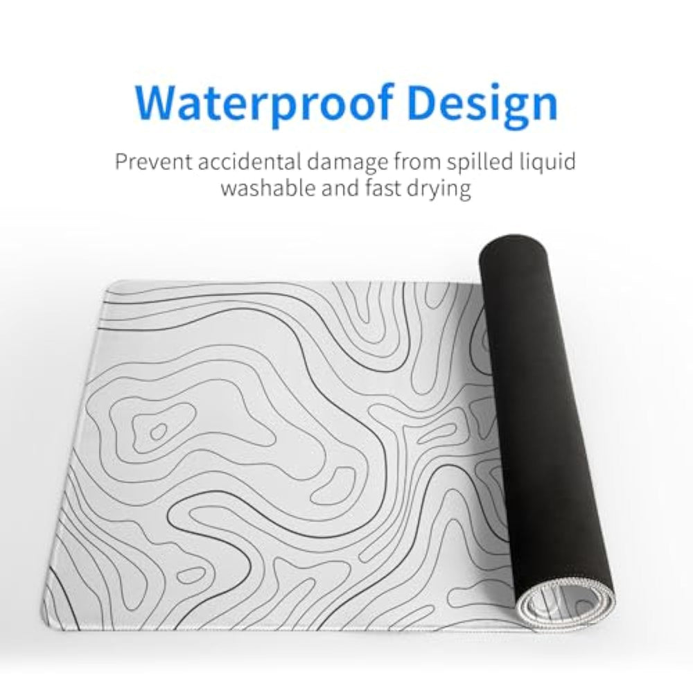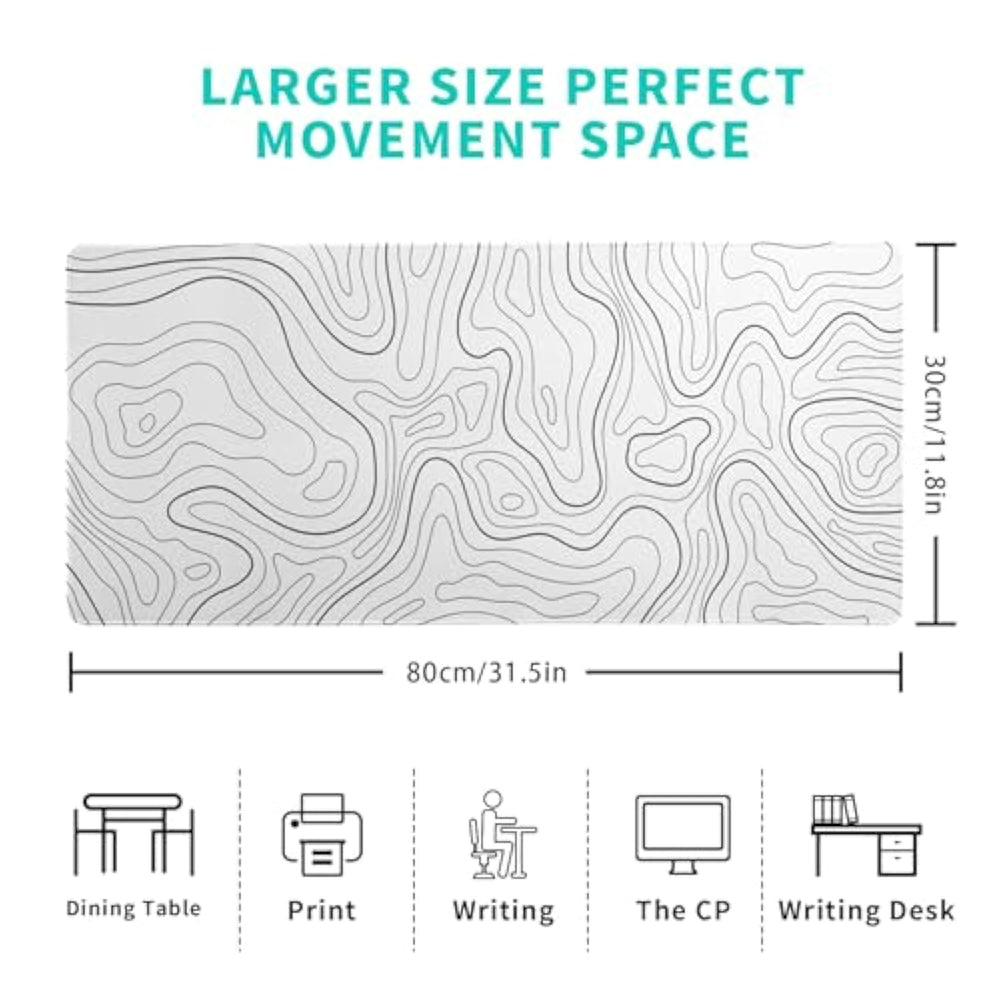 | ?[Extended Mouse Pad Size]:The Extended White Topographic Contourm Desk Pad Measures 31.5X11.8X0.12 Inches That Covers Most Of The Desk. Offers A Wide Area To Have Your Laptop, Mouse And Keyboard. You Can Freely Move Your Mouse Without Any Interruption And Don'T Have To Continually Adjust The Mat As You Do With Traditional Mousepads. | | ?[Ultra-Smooth Surface]:With Comfortable Lycra Surface And Breathable Material To The Pads. Making Your Mice Glide On Its Surface Effortlessly, Which Can Provide Optimum Speed And Accurate Control During Your Working Or Gaming. | | ?[Special Design]:Our White Topographic Contour Mouse Pad Long With Delicate And Durable Stitched Edges, Which Can Effectively Prevent Fray And Degum. It Also Enhances The Aesthetic And Lifespan Of The Mouse Pad. You Can Use It Easily. | | ?[Easy To Clean]:This Large White Topographic Contour Mouse Pad For Desk, Spill-Proof Coating Protects Your Desktop From Spilled Water, Drinks, Ink And The Other Liquid Spilled Liquid Or Other Accidents.Easy To Clean, Just Wipe With A Wet Cloth Or Paper, Does Not Fade And Can Be Washed And Foldable Without Leaving Creases, Easy To Carry. | | ?[Perfect Gift]:Our White Topographic Contour Gaming Mousepad Big Is Also Fine Desktop Decorations, Which Is The Best Gift For Your Families Or Friends On Thanksgiving, Christmas, New Year Or Other Holidays. You Can Choose The Most Suitable Mouse Mat For You And Your Friend Who Loves Gaming. | |