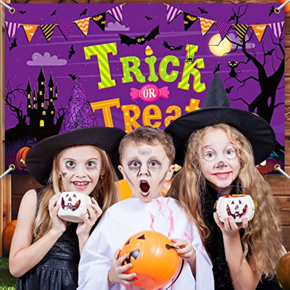 This Halloween photo backdrop measures 180 x 110 cm (70 x 43 inches), providing a large, eye-catching decoration that creates a spooky atmosphere and serves as a perfect background for photos. Featuring motifs like the moon, pumpkins, castles, and ghosts carrying candy, it combines fun and fright to make memorable party moments. Made of soft, sturdy polyester fabric, the backdrop is lightweight, foldable, washable, and easy to store or carry, with ironing options to remove creases. Ideal for Halloween parties, birthdays, vampire or holiday-themed events, it can also be used for dessert tables, video backgrounds, studio props, or tablecloths. The set includes the backdrop and a 6-meter rope for easy hanging, with the option to secure using clips or tape.