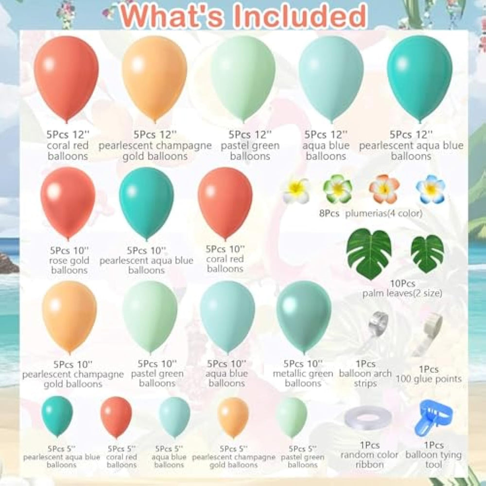 Create the perfect tropical vibe with this balloon garland kit, featuring 121 balloons and fun accessories like a foil coconut tree, foil daisies, a foil pineapple, and 10 artificial hibiscus flowers. Ideal for summer parties, Hawaiian luaus, birthdays, baby showers, and more, this kit transforms any event into a tropical paradise. With four essential accessories—balloon arch strip, glue points, tying tool, and ribbon—setting up a stunning balloon arch is quick and easy. Made from high-quality, child-safe latex, these balloons can be inflated with air or helium, making it simple to create a memorable backdrop for any celebration.