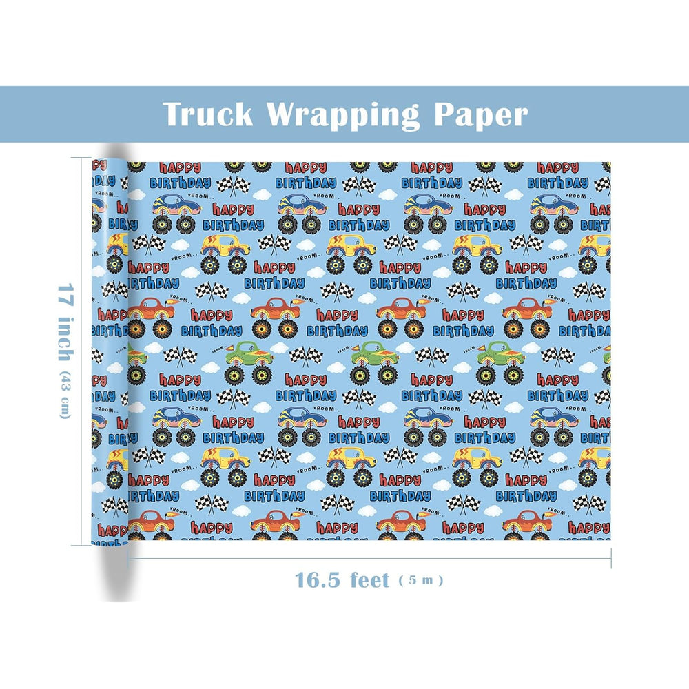 | Perfect Size: Each Roll Measures 17 Inches Wide X 9.8 Feet Long, Which Provides You With A Total Of 13.95 Square Feet Of Paper. It'S Perfect For Any Small Sized Gift And Is Also Very Convenient To Store. Truck Wrapping Paper: Truck Car And Checkered Flag With "Happy Birthday Lettering Design, Vivid Colors And Interesting Pattern Will Make Your Gift Special And Shining. Premium Quality: Created With High-Quality Paper Materials, Thick And Not Easily Tear Or Rip. Item Came With Shrink Film To Prevent Wrapping Paper From Scratches And Reduce Dust. Use All Occasion: Perfect For Kids Boys Birthday, Baby Shower, Party, Holiday Gifts Wrap. It Is Also Great For Craft Project And Greeting Card Decorations. Quality