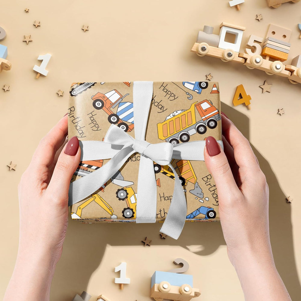 | Features: Kraft Wrapping Paper Printed Cartoon Truck And "Happy Birthday" Text, Make The Gift Wrapping Be More Eye-Catching Size: Each Roll Measures 17 Inches Wide By 16.4 Feet Long, Suitable For Small And Medium Gift Wrap And Can Meet Daily Needs Material: Made From High-Quality Coated Paper, Durable And Tear-Resistant, Makes Your Gifts Stand Out No Crease: Comes In Roll Form Consisting Of 1 Separate Individually Wrapped In Plastic, Not Folded So No Creases! All Occasion: These Wrapping Paper Are Perfect For Kids' Birthday, Holiday And Can Be Used To Add A Splash Of Color To All Of Your Gifts. Please Do Not Store In Direct Sunlight