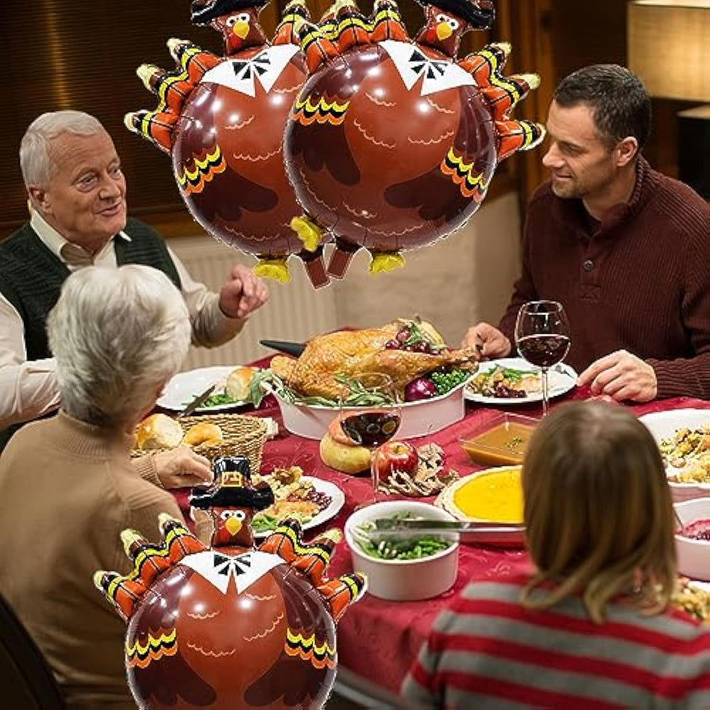 This set includes three Thanksgiving turkey foil balloons with bright colors and vivid patterns, ideal for adding festive charm to fall harvest parties, birthdays, parades, and holiday gatherings. Easy to inflate and use, these balloons create a cheerful atmosphere for Thanksgiving celebrations and make fun party favors to share with family, friends, and coworkers.