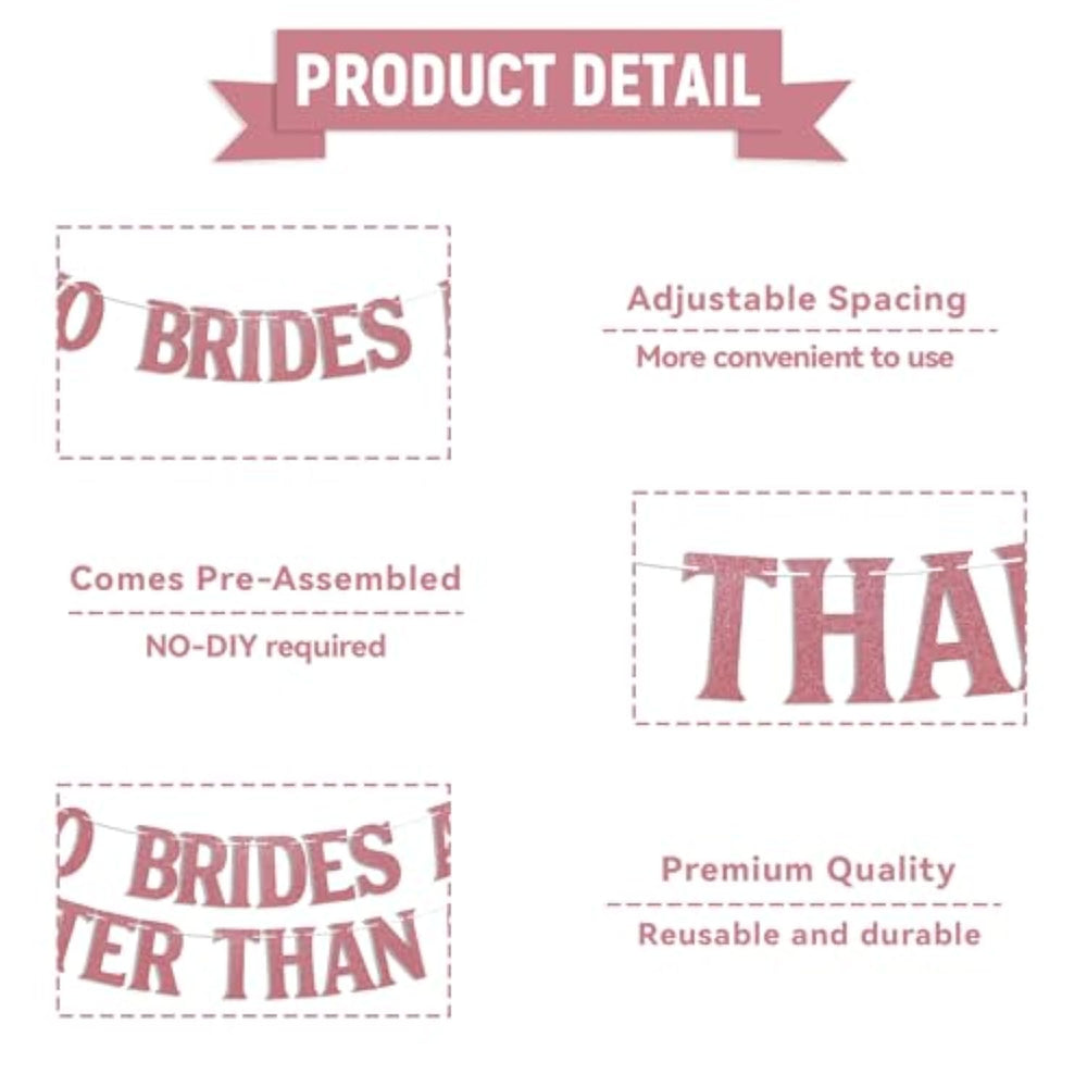 | ??????????????????? ????????????????????? The "Two Brides Are Better Than One"Lesbian Wedding Engagement Party Decor Banner Has Bright And Vivid Colors, Clear Font Cuts And Novel Style, Which Is The Latest Design Of Our Store In 2024. | | ?????????? ???????????????? The Banner Is Made From Thick, High Quality Cardstock And Each Letter Is Made From 400Gsm Glitter Paper. The Surface Of The Banner Is Glittering And Very Eye-Catching. | | ????????-?????????????? No Need To Assemble It By Yourself. After You Get The Product, Just Unpack The Product And Then You Can Hang The Product On Walls, Cabinets And Windows For Party Decoration And Create A Party Atmosphere Easily. | | ???????????????????? The Banner Is Reusable. They Can Be Folded And Put Away After Use, So You Can Use Them Again And Again For Future Celebrations. | | ????????????-?????????? ???????????????? If There Is Any Problem With The Product And It Doesn'T Meet Your Expected Standard, Please Tell Us, We Will Provide The Best Solution To Ensure Your Shopping Experience! | |