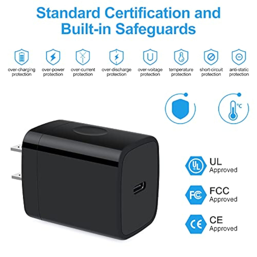 | ?Wide Compatibility Type C Fast Charger?:20W Usb C Android Charger Kit Compatible Devices Iphone 16/16 Pro/16 Plus/ 15 15 Pro Max 15 Plus Samsung Galaxy A53 5G,A13 5G,S22,S22 Plus,S22 Ultra,S21 Fe 5G,S21,S21 Ultra,S21 Plus,S20 Ultra,S20+,S20,S20 Fe,S10,S10E,S10+,S9,S9+,F23,Z Fold 3,Z Flip 3,A12,A22 5G,A32,A52 5G,A52S,A51,A50,A72,A71,F42 5G,M52 5G,M42,M32 5G;Galaxy Note 20 Ultra, Note 20 5G, Note 10+;Google Pixel 6,6 Pro,5,4A,4Xl,4,3A Xl; Moto G Power/G Stylus 2020 2021 2022, Edge Plus And Other Usb Type C Device | | ?20W Pd 3.0 Fast Charging Block Type C?: Equipped With A Pd Samsung Fast Charger Type C Port Which Provides You Max 20W Output Power.The Usb C Power Adapter Charger Plug Delivers Up To 3 Amp To Give Your Phone Power At A Much Faster Rate Than Your Standard 1A Or 700Ma Charger, Enables Your Battery From Zero To 50% In Just 30 Minutes, 75% Faster Than Standard Charger Brick. | | ?6Ft Android Phone Usb C Charging Cable Cord?: The Usb C Charger Block Fast Charging Box Is With Pd Charging Cord.The Usb-C Connector Offers A User-Friendly Reversible Design, Fast Charging And Transferring, Up To 480 Mbps Data Transfer Speed; Power Output Up To 3Amp.The Flexible And Sturdier Nylon Braided C Phone Charger Cord Ensures Longer Service Life And Will Never Rupture | | ?Safety Insurance Usb C Fast Charging Brick?: The Intelligent Circuit Design For 20W Samsung S22 Phone Charger Protects Against Short Circuiting, Over-Heating, Over-Currents, And Over-Charging. The Type C Wall Charger Charging Stops When Battery Is Full. | | ?Package Included?: - 1X 20W Type C Block And 1X 6Ft Type-C To Type-C (Usb-C) Cord. Reliable And Friendly