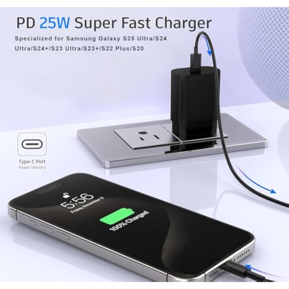 | Rapid Charger: 3.0 25W Usb-C Charger, An Efficient Charging Solution Designed For Samsung Users, Can Charge Your Device Up To 70% In Just 30 Minutes, Saving You More Than 1 Hour Of Charging Time Compared To A Traditional 5W Stock Charger. | | Safety And Efficient Heat Dissipation: This Charger Adopts Advanced Safety And Heat Dissipation Design To Ensure Efficient And Safe Charging Process. It Uses High-Quality Wires Inside With Advanced Heat Dissipation Materials, Such As Heat-Conductive Adhesive And Heat Sinks, To Effectively Reduce The Temperature During Charging. | | Outstanding Performance: The Data Cable Is Made Of High-Quality Materials With Excellent Tensile Properties, Able To Withstand Frequent Plugging, Pulling And Tugging In Daily Use. Its Fast Charging Function Can Significantly Shorten The Charging Time Of Your Device. | | Original Chip Manufacturing: Made With The Original Chip, This Type-C Charger Provides Full Support For Your Samsung Devices, Perfectly Adapting To Samsung Systems And All Its Future Ups. It Enables High-Speed Charging And Data Transfer Through The Type-C Connector, Ensuring Seamless Compatibility With Your Device. | | Usb C Charger Block,Usbc Charger,Type C Charger Fast Charging,Charger,Usb C Charger,Fast Charger Usb C,C Chargers Fast Charging,Samsung Charger,Samsung Charger Fast Charging Cord,Phone Charger,Cargador Samsung Original Carga Rapida,Fast Charger Usb C | |