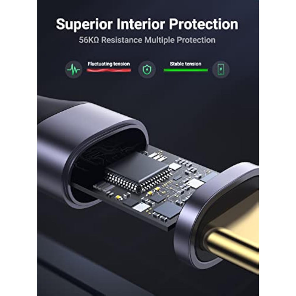 | 5Gbps Light-speed Data Sync: 10X faster than USB 2.0 cable(480Mbps, 25-40MB/s), UGREEN 5Gbps USB C 3.0 Cable transfers 10GB music, movies, or entire seasons of TV shows in only 10 seconds. | | 3A Fast Charging: The 18W(5V/3A) output brings 25% faster charging than other cables which provide 5V/2.4A output, fully juicing up a 3700mAh phone in just 112 minutes.? This USB C 3.0 fast charging cable supports Quick Charge 2.0 and 3.0??Tips for fast charging: 1. You need an OEM or QC3.0 fast charging charger. 2.Your phone must support fast charging.? | | Anti-wear Construction: Double-braided nylon exterior and Aluminum housing protects the cable safe from fraying and splitting while surviving 10,000 bending tests and 100N tension. | | Stable Connection: Unique gold-plated connectors gets rid of loose connections or breakage, get more stable data transmission and withstand 10,000 plugs/unplugs. Smooth fast charging current is delivered without interference by multi-layer shielding. | | Universal Compatibility: UGREEN USB charger cable can quickly charge and transfer data at a high speed, and is compatible with USB-C devices like cellphones (iPhone 15 Series, Galaxy S Series, Note 20, LG etc.), Tablets(iPad Mini 6, iPad Pro, etc.), PS5 wireless controller and more. | |