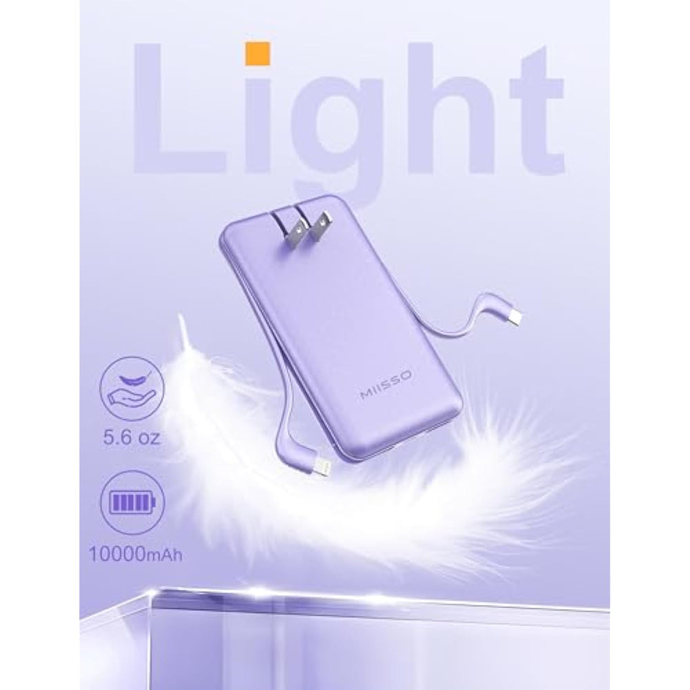 | Power Bank With Foldable Ac Wall Plug: This Power Bank Is Built-In Wall Plug That Charges Itself Directly From The Wall Outlet. And It Supports Charging Your Devices As A Ac Adapter. It Will Be Your Best Travel Buddy | | Power Bank With Cable: Not Only Has Usb C Cable, But Also Has Ip Cable, Power Bank Is Compatible With Iphone, Android Devices, And Usb-C Mobile Phones And Smart Devices Etc. You Do Not Need To Take Charging Cables | | The Smallest 10000Mah Power Bank: This Power Bank Is The Smallest Power Bank Of , 2024 Upgraded Version. Its Body Is 2.6*5*0.7Inch, Really Pocket Size. It Will Be No Pressure To Put It In Your Pocket | | High Capacity: Contains 10000Mah Of Power. Enough To Provide Over 2 Entire Replacement Charge For Iphone 16, For Iphone 15, For Iphone 14 And Samsung Galaxy S24. 10000Mah Can Meet Your Daily Electricity Demand. It Will Be Your Most Important Partner Daily. And When You Are Traveling Or On A Business Trip That Will Be Helpful | | What You Get: 10000Mah Battery Charger X 1, Usb Charing Cable X 1 And User Guide X 1 | |