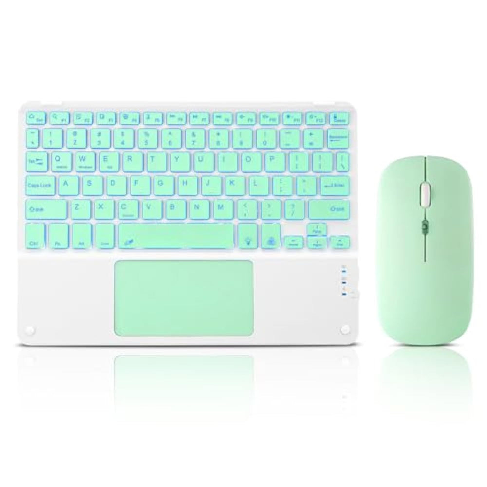 | 7-Color Led Backlit - This Wiressless 7-Color Led Backlit Bluetooth Keyboard And Mouse Adopts Bluetooth Wireless Connection And Scissor Key Structure,Which Bring You A Perfect Input Experience,It Has Built In Rechargeable Polymeric Lithium Better And Charging Indicator,The Keyboard Will Enter Into Sleeping Mode If There Is No Action In 10 Minutes,Therefor It Has A Small Comsumption And Long Battery Life. | | The Keyboard And Mouse Compatible With Ios, Including Computer, Desktop, Pc, Laptop, Android Tablets Windows, Apple Iphone, Ipad, Android Samsung Windows Surface Tablet Cell Phone,Etc. | | Pairing Instruction:Before Use This Keyboard,It Must Be Connected With Your Tablet Or Other Device,When It Pairs Successfully,You Do Not Need To Reconnect It In Future,Please Connnect The Keybaord With Your Tablet According To The Right Graphic Instruction As Below:1.Turn On The Keyboard;2.Press The "Connect" Button To 3 Seconds,The Blue Light Blinks;3.Open The Bluetooth From Settings In Your Ipad And Find The Bluetooth Keyboard,Then Click And Connect(Password Free Connection). | | Hot Keys And Indicator:You Can Press The Fn+Function Keys,Power Led:When The Keyboard Turns On,It Flashes 1-2 Seconds And Then Goes Out Automati