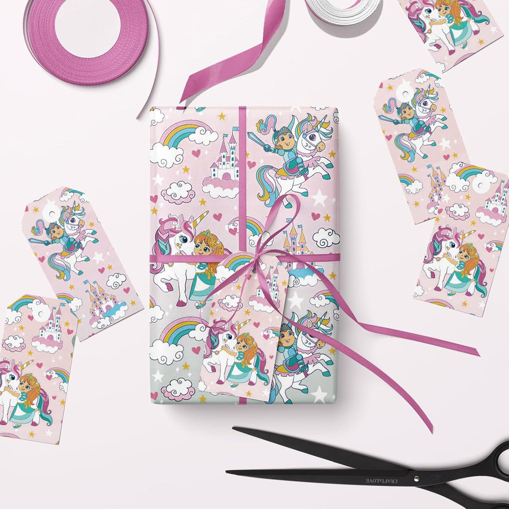 | Unicorn Designs: The Wrapping Paper Features A Whimsical And Magical Design, With Colorful Unicorns And Their Vibrant, Rainbow-Colored Manes, Surrounded By Clouds, Stars, And Crescent Moons. Pastel-Colored Castles Add A Fairy-Tale Touch To The Background. With Its Dreamy, Cheerful Atmosphere, This Wrapping Paper Is Perfect For Gifting To Girls Who Love Unicorns And Fantasy Themes. Short Roll: This Birthday Wrapping Paper Set Includes 3 Rolls, Each Measuring 17 Inches In Width And 120 Inches In Length, Offering A Total Of 42.5 Square Feet Of Paper. It Is Ideal For Medium And Small-Sized Gifts. Please Verify The Size Of Your Gifts Before Ordering To Ensure The Paper Fits. Premium Quality: Made With Durable Paper Materials, This Wrapping Paper Is Thick And Resistant To Tearing Or Ripping. It Comes With Shrink Film Packaging To Protect The Paper From Scratches And Reduce Dust. Perfect For Any Celebration: This Charming Unicorn-Themed Wrapping Paper Is Ideal For A Variety Of Occasions, Including Birthdays, Baby Showers, Or Any Special Event Celebrating Young Girls. Whether It'S A Gift For A Little One Or Someone Who Loves Whimsical, Magical Designs, This Wrapping Paper Adds A Joyful, Fairy-Tale Touch To The Occasion. Its Playful And Vibrant Design Makes It Perfect For Kids, Especially Those Who Adore Unicorns, Rainbows, And Fantasy Themes. Versatile Fun For All Your Gifts: Ideal For Small To Medium-Sized Items, This Wrapping Paper Is Not Only Great For Presents But Can Also Be Used For Crafts, Scrapbooking, Or Decorating Party Favor Bags. Its Durable Construction Ensures It Will Hold Up Well During The Wrapping Process, Giving Your Gifts A Magical, Eye-Catching Finish.