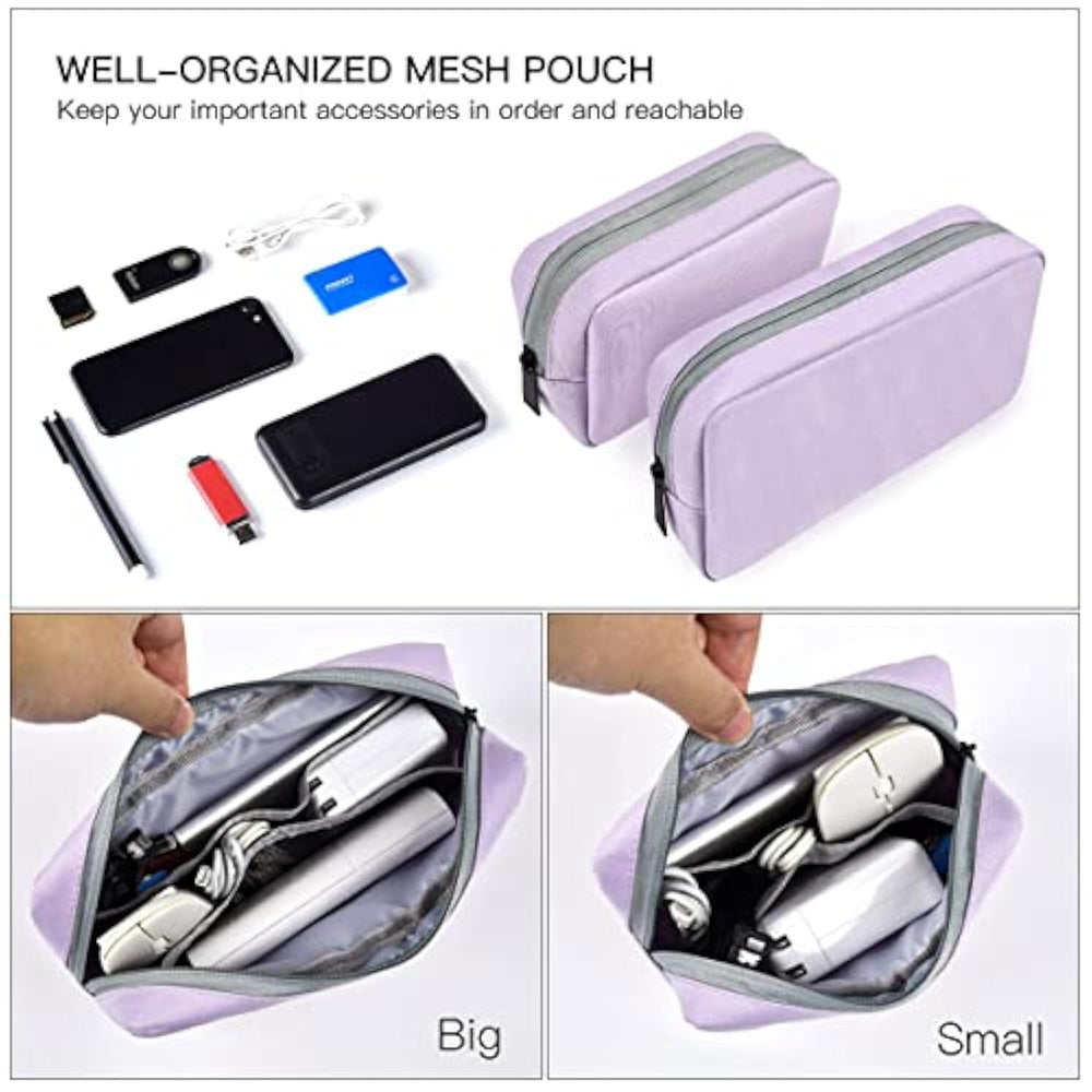 | Big+Small Stbig+Small Storage Bag: 2-Pack With Small + Big Design, Big Dimension: 9.05" X 4.3" X 1.96", Small Dimension: 6.3" X 4.3" X 1.96", The Electronics Organizer Bag Is Perfect Fit For Most Laptop And Cellphone Accessories Such As Power Bank, Mouse, Power Adapter, Hard Drive, Nintendo Switch Lite, Usb Cables, And Also Can Be Travel Bag For Your Cosmetics. A Perfect Christmas Gift Deal For Your Family And Friends. | | Made Of High Quality Material: The Electronics Accessories Bag Is Made Of Premium And Long-Lasting Canvas Material Exterior And Soft Lining Interior, Lightweight And Sturdy, Offer Comprehensive Protection Against Knocks, Impacts, Bumps, Drops, Dents And Scratches. | | Extra Mesh Pocket: With Mesh Pouches On The Inside To Secure Your Chargers, Power Bank, And Usb Cables Or Earbuds In Place, This Zippered Travel Cable Organizer Pouch Is The Must-Have Accessory For Those Who Travel Quite A Bit. | | Water-Resistant Washable: Waterproof And Dustproof, The Electronics Case Organizer Protects Your Laptop Accessories Against Spills, Dust, And Other Contaminants, Easy To Wash And Reuse. | | A Perfect Accessory For Your Travel: 1 Big And 1 Small Design Meets Your Different Needs. The Cord Organizer Travel Case Has Perfect Size To Fit Into Either Your Luggage Bag Or Backpack. Just The Right Size For Stuffs And It Makes Traveling With Accessories Much Easier. | |