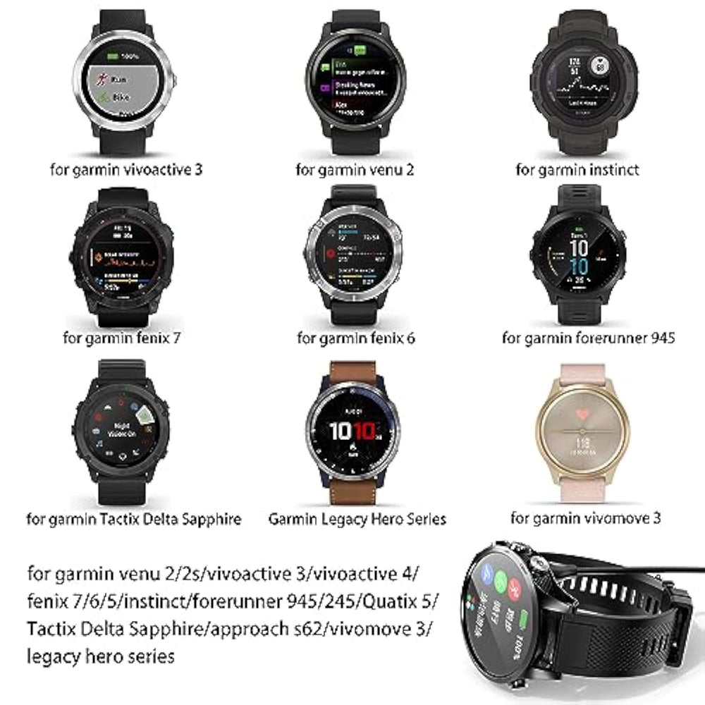 | ? Compatible Models?This Usb A Charger Charging Cable With Charging Dock Compatible With Garmin Vivoactive 5/Vivoactive 3/ Garmin Fenix 7 7S 7X 6 6S 6X/5 5S 5X/ Garmin Instinct/ Garmin Forerunner 945 935 245 245M 45 45S/Garmin Quatix 5/Garmin Approach S62 S60 /Garmin Vivomove 3/3S.Note: Please Charge Your Garmin Smartwatch Before The Battery Runs Out. | | ?Premium Quality?Made Of High-Quality Abs + Tpe Material And Copper Wire Ensures Stable Current Transmission, It Is Resistant To High Temperature And Has Good Elasticity, Which Ensures The Quality Of The Garmin Watch Charger Charging Cable, Provides The Excellent Charging Experience For Your Device. | | ?Safe Charging?This Garmin Watch Charger Cable Has Voltage Regulator To Protect Your Watch From Being Damaged By Overcurrent When Connected To Power Source, Designed With Over- Voltage And Over- Current Protection, Which Will Protect Your Watch From Being Damaged When Charging. | | ?Fast And Stable Charging?You Can Connect With The Power Adapter, Wall Charger, Car Charger, Power Bank, Laptop, Pc And So On, Those Charging Methods Can Provide High Efficiency And High Stability Charging Experience For You, Provides Fast And Stable Charging Speed. | | ?What You Get?1 Pack Usb A Garmin Watch Charger Cable With 3.3Feet. If There Is Any Questions, Please Feel Free To