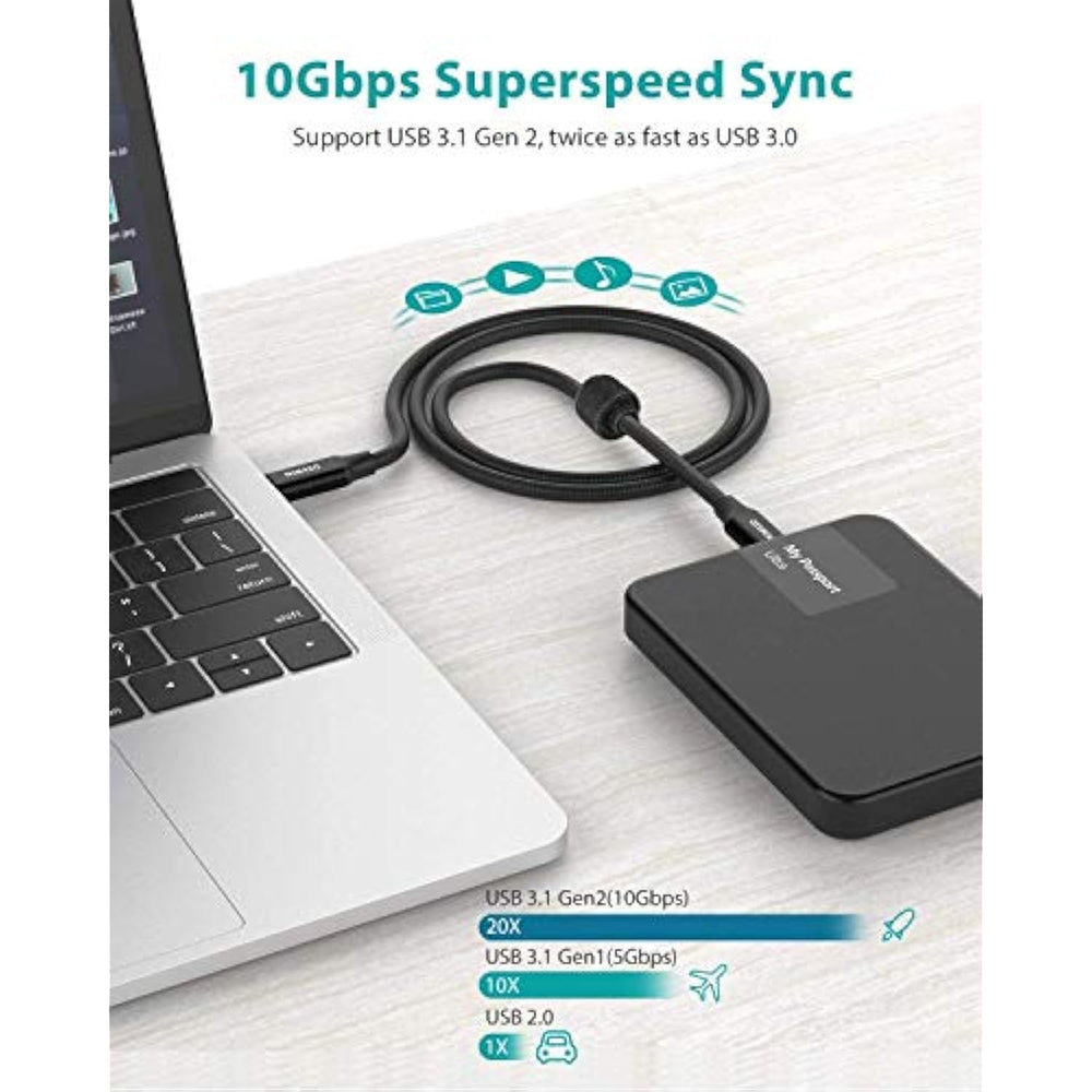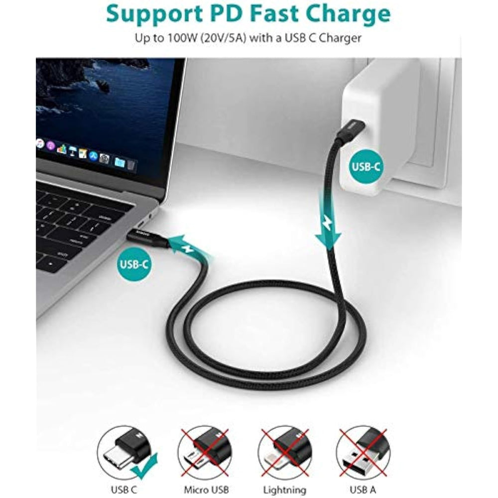 | 3.3Ft Perfect Length: With The Perfect 3.3Ft Length, You Can Use This Usb C 3.1 Gen 2 Cable To Display Documents Freely In Meeting Room, Or Transfer Data To Sdd In A Long Distance 6Ft. What'S More, You Can Also Extend Your Usb-C External Monitor (Please Make Sure The Devices Support Dp Alt Mode). Perfect Length For Your Easy Life-Use | | 10Gbps Superspeed Data Transfer And 100W Charging Power: Offers Super Speed Syncing At Max 10 Gbps, Connect Ssd To Transfer Big Files In Seconds. Utilizes E-Marker Chip To Safely Deliver Up To 100W (5A) Of Power, Charges Any Usb-C Device At Max Speed | | 4K Video Output: Supports Thunderbolt 3 Port. Offers Displayport Alternate Mode (Dp Alt Mode), Audio And 4K@60Hz Video Signal For Video Output And Connecting Usb-C Monitor / Display Screen, Such As Lg 4K, Samsung, Hp Elitedisplay, Dell Usb-C Monitors And More. (Note: The Video Function Works For Those Devices That The Usb C Port Supports Dp Alt Mode.) | | Compatibility List: This Usb 3.1 Cable Is Compatible With Iphone 15/15 Plus/15 Pro/15 Pro Max, Macbook 2016/2017/2018, Macbook Air 2018/2019, Macbook Pro 13'' /15'' /16'', Ipad Pro 12.9'' /11'', Google Pixel Xl/2/2Xl/3/3Xl/3A/3A Xl, Samsung Galaxy S21/ S21+/ S21 Ultra/ Note 10/ Note 10 Plus/ A80, Nexus 6P 5X, And More Type-C Devices | | Secure Reliable: Usb C To Usb C Cable Built-In 56? Pull-Up Resistor And 22Awg Thick Copper Cores To Ensure Loading Safety. 10,000 Times Plug Test And 10,000 Times Bending Test Ensure Maximum Durability. 5X Durable Nylon-Braided Cable Combined With Aluminium Alloy Shell Ensures Solid And Tangling-Free. Excellent Choice For A Durable And Cost-Effective Usb-C To Usb-C Cord | | Pro Tip: Verify That Both Your Device (Laptop/Phone/Tablet) And Monitor Support Displayport Alt Mode Over Usb-C For Full Compatibility | |