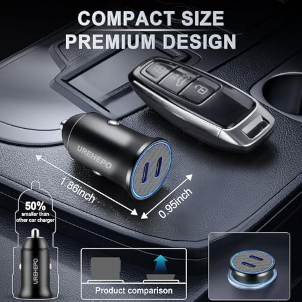 | Ultra Compact - The Tiny Thumb-Sized Body Fits Most Car Cigarette Lighters, Freeing Up More Space. | | Dual Pd 3.0 Ports - Usb C Car Charger Is Equipped With Dual Pd3.0 Fast-Charge Ports To Maximize Your Device Charging Speed, Supports Simultaneous Charging Of 2 Devices, But Does Not Support Simultaneous Super-Fast Charging. | | All Metal, Won'T Heat - The Full Zinc Alloy Body Is Scratch-Resistant, Durable, And Attractive. The High-Quality Material Keeps Your Car Charger Adapter Always Looking New. This Metal Usb Car Charger Will Not Overheat At High Temperatures, Which Makes It Safer Than Plastic Ones. | | Universal Compatibility - Charge A Huge Range Of Devices Including Phones, Tablets, And More. | | Professional Service - We Are Committed To Providing Good