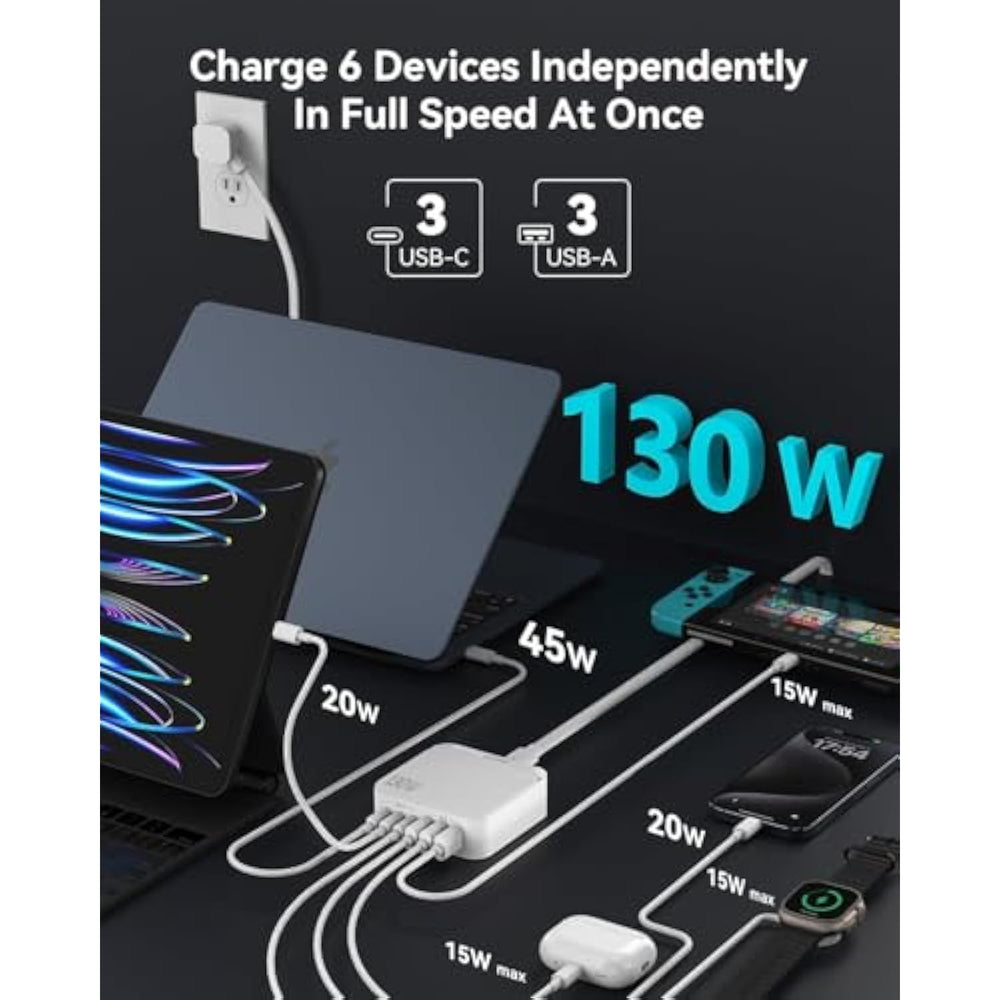 | ??Exclusive 6-In-1 Independent Fast Charging?Experience True Simultaneous Charging With 'S Usb C Charging Station. Our Multiport Fast Charger Block Delivers A Full 100 Watts Of Power Across Six Independent Ports (3 Usb-C, 3 Usb-A). Each Device Enjoys Its Own Dedicated Power Supply (C1: 45W, C2: 20W, C3: 20W, A1-A3: 15W), Ensuring Full-Speed Charging Without The Common Problem Of Power Output Reduction Or Disconnection When Multiple Devices Are Connected. | | ??Space-Saving Cost-Efficient Compatibility?With The Pd/Pps Outputs Of 45W And 20W, The Multi Usb-C Charging Block Can Fast Charge 1 Laptop, 2 Phones/Tablets And 3 Others At Once Include Iphone 15/14 Pro Max Plus, 13 Pro Max Mini, Iphone 12/12 Pro/12 Pro Max/12Mini, Iphone 11/11 Pro/11 Pro Max/Xs/Xs Max/Xr/X/8 Plus/8/7/6, Samsung Galaxy S23 Ultra/S22 Ultra/S21 Ultra Series, Macbook Pro/Air, Dell Xps, Ipad Pro/Ipad Air/Ipad Mini, Steam Deck, Google Pixel 6/5/4A. | | ??Home Travel Friendly With 6Ft Detachable Cord Right-Angle Flat Plug ?Our Usb C Charging Hub Includes A 6Ft Etl-Certified Detachable Cord And A 45° Right-Angled Flat Plug, Enhancing Placement Flexibility Behind Furniture Or When Connecting To Traditional Outlets In Hotels Or On Cruise Ships. It Also Features Cable Ties For Tidy Cord Management, Making It Perfect For Use At Home, In The Office, Dorms, During Travel, Or On Cruises. | | ??Secure Everywhere With Anti-Slip And Double-Sided Tape?Equipped With Anti-Slip Pads And Double-Sided Tape, The Multiport Usb Power Strip S Secure Placement On Any Surface—Desktops, Walls, Nightstand Or Even Under Desks, Satisfying All Your Usage Scenario Needs. | | ??Multi-Protection System Advanced Gan Iii Technology?Featuring Iceshield 3.0 Gallium Nitride (Gan) Technology, The Usb C Charger Station Boasts An Enhanced Surge Protector And Built-In Safeguards Against Overcharge, Overheating, Short Circuit, Overcurrent, And Overvoltage. It Continuously Monitors Temperature, Performing Over 3 Million Checks Daily To Protect Against Fire Risks And Battery Damage. | | ??What You Get? X1 Pro Charging Station, 6Ft Flat Plug Extension Cord, Cable Tie, Adhesive Tape, Welcome Guide, And Friendly