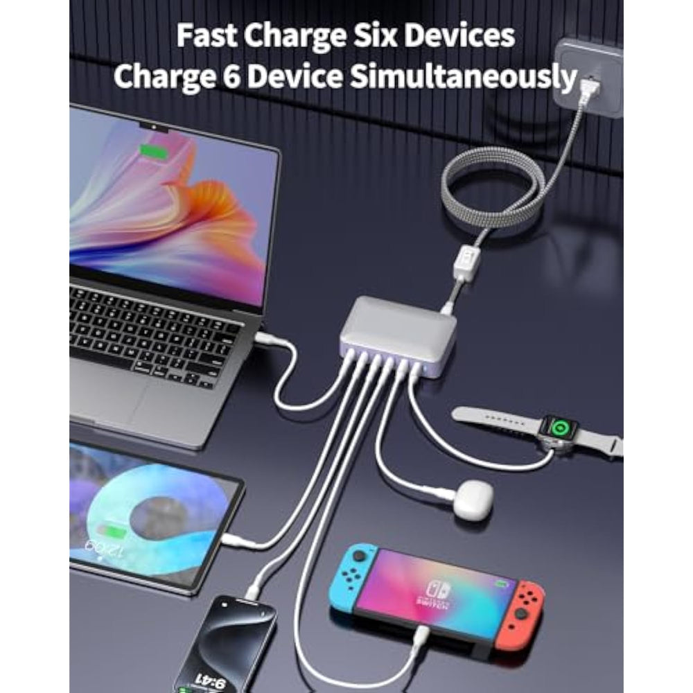 ?Six-In-One Compact Usb Charger?Our Charging Station For Multiple Devices Have 4 Usb-C 2 Usb-A Ports Independently Charging 6 Devices At Once (164W Total), Our Type C Charger Block Unlike Most Chargers With False Advertising And Outputs That Slow Down When Multiple Ports Are Used 4.9Ft Extended Power Cord Is Convenient For Home Or Office, No Other Adapters And Outlets Are Needed, Help You Create An Organized And Clean Desktop. | | ?Compact And Portable Usb Charger Block?Multi Chargers For All Devices Perfectly Charges Multiple Devices For Home, Office And Travel. Small Size Saves You 50% Space And Fits Easily Into Pockets, Handbags, Travel Cases. The 4.9Ft/1.5M Detachable Power Cord With Push-Button Switch For This Multiport Usb C Charger Station Can Be Extended To The Desktop, Bedside, Counter, Nightstand, Service Desk, Etc. | | ?Universal Compatibility?This Desk Charger Station Charge Virtually All Your Mobile And Tablet Devices At Maximum Speed With Usb-C And Standard Usb I.