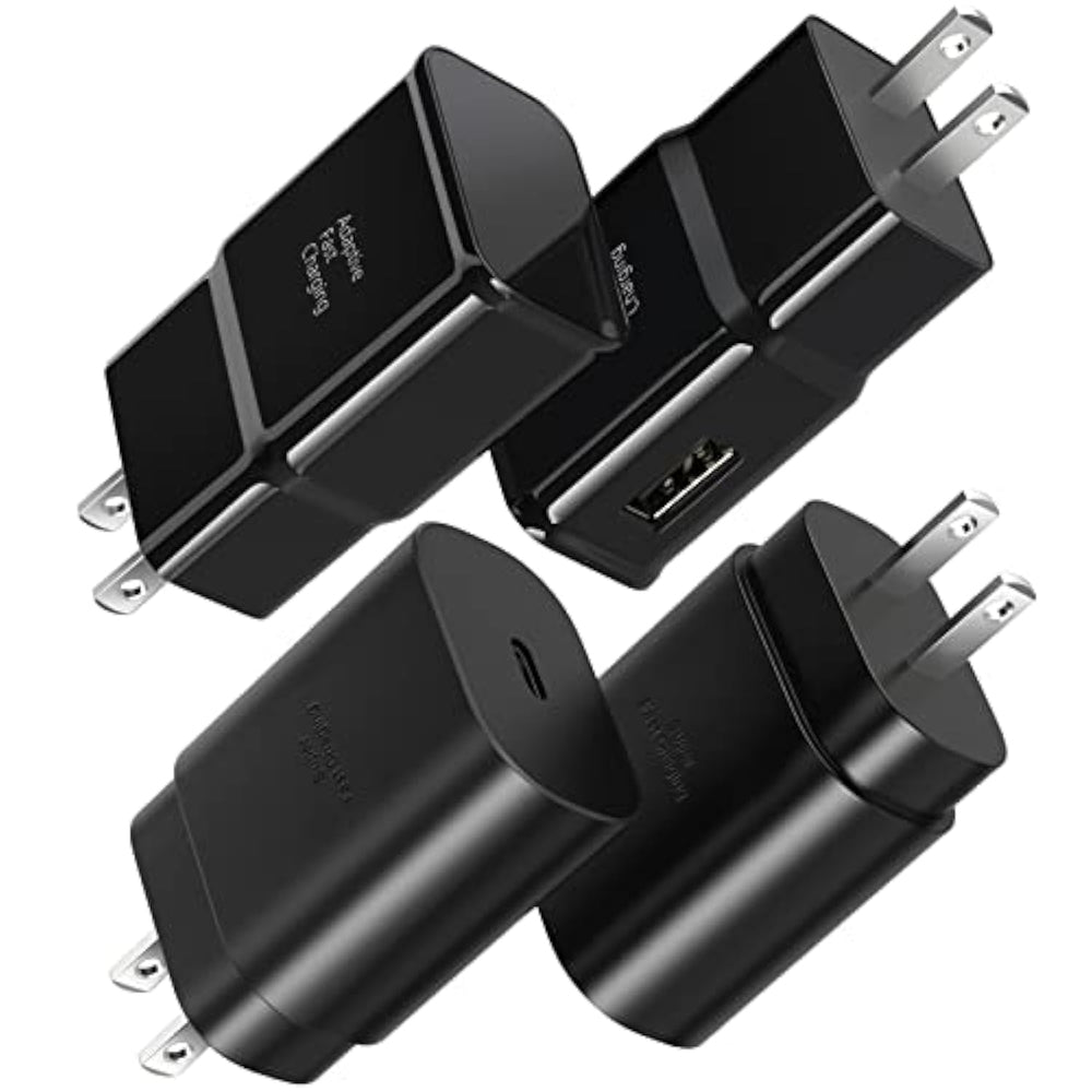 | ??Super Fast Charging Adapter? 2 Pack 25W Usb C Fast Charging Block With Power Delivery 3.0 Technology Provide Optimized Charging Speed, Up To 25W Output Power Type C Charging Block Enable To Charge Your Samsung Galaxy S23/S23+/S23 Ultra/S22/S22+/S22 Ultra/S21 Ultra/S20/Note 20 To Full In Just 1 Hour. The Pd Charger Also Fits For Apple Devices, Battery Of Iphone 14/Iphone 14 Plus/Iphone 14 Pro/Iphone 14 Pro Max/Iphone 13/12/11/Mini/X/Xs/Xr Can Up To 50% In 30 Minutes, Quick Charge To Tablets And Ipad As Well. 25W Charger Usb C Set You Free From Long Time Waiting On Charging. | | ??Fast Charge Block? Supports Adaptive Fast Charging(Afc) Technology, Max 18W Output Rapid Charger Can Charge Your Phones 50% In 30Mins, Intended For The Usb-C Devices In Quick Charge 3.0/2.0, Such As Samsung Galaxy S21/S20/S10/S9/S8/Note 20/Note 10. Other Non-Fast Charging Devices Like Old Samsung Phones Tablets, Bluetooth Speakers And Electrical Toys And Other Devices In Micro Usb Port At The Speed They Can Handle. | | ??Enjoy The Flexibility? Connected With Different Cables, Usb Charger Blocks Satisfied Max 5X Faster Charging Speed Than 5V Wall Charger, Help To Save Much Time In Waiting Charging, Bring You More Fun And Convenient. Total 4Pcs Usb C Wall Charger Pack Cover Your Charging Needs In Different Place, Lightweight, Fashion And Compact Sizes Design Is Easy To Plug In Anywhere You Want, 100-240 Wide Range Input Fits Different Countries’ Standard, Makes It An Deal For Worldwide Travel. | | ??Superior Safety Design? Equipped With Intelligent Chips, Type C Charger Block Provide Fast And Safe Charging To Your Devices. Fast Charger Will Automati