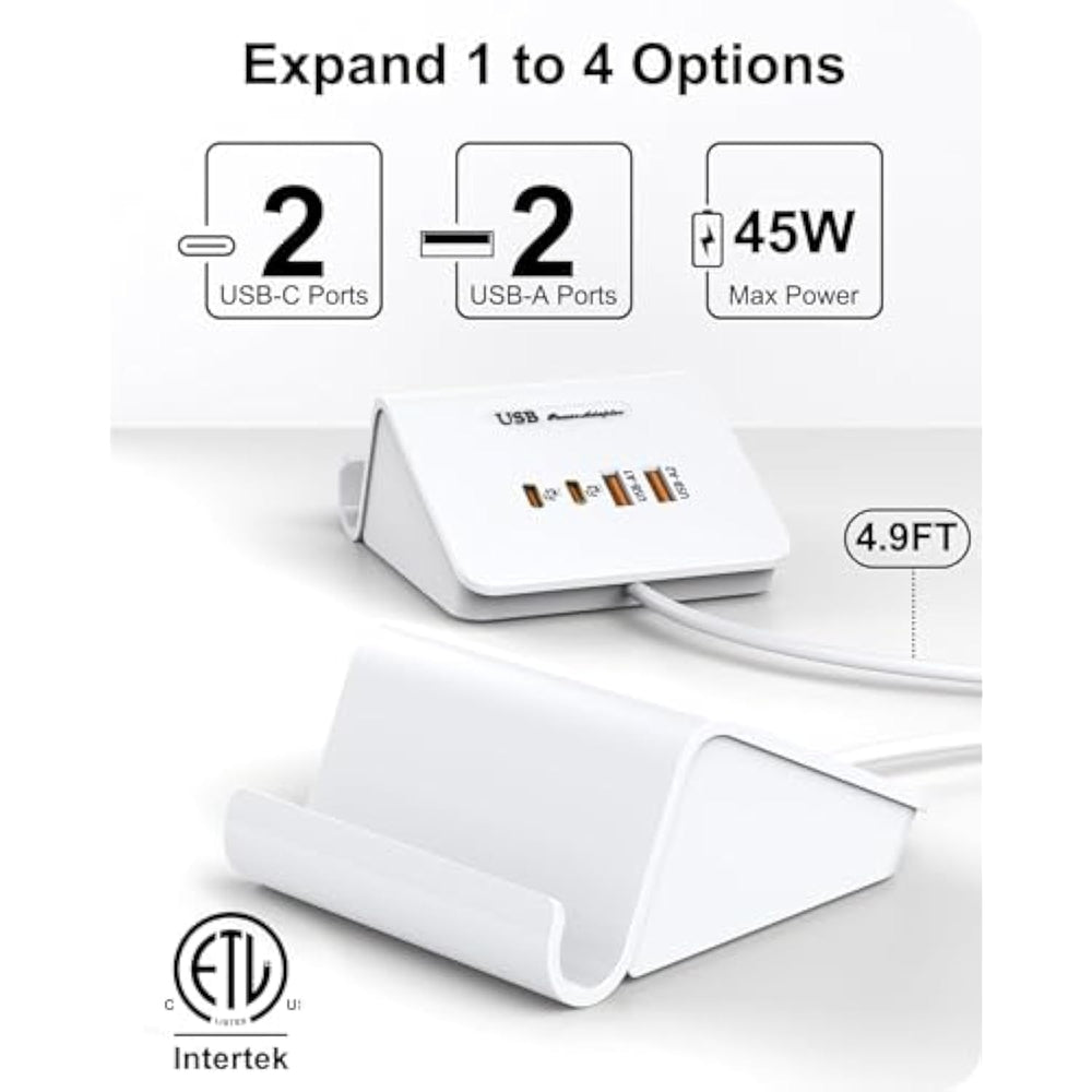 | Pd 45W Fast Charger: Usb C Charging Station Provide Max Output 45W For Single Usb C Ports, Which Can Charge Your Macbook 2X Faster Than General Usb Ports. The Usb C Port Output Up To 45W And The Usb A Port Offer Max 5V3A 15W, Suitable For Most Usb-A Devices | | Clutter-Free Charging: 4-In-1 Usb Charger Station Allows You To Abandon The Heavy Charging Adapter, Just Get 1 Charging Station To Replace 4 Adapter, A Perfect Desktop Charger Station For Multi-Devices User | | Gan Charging Technology: This Small Usb Charging Hub Is Built In Gan Chip, Thanks To The Gan Technology, The Charging Station Is Of High Output Power And Faster, More Stable Charging Speed, Plus, It Has A Smaller Size For Travelling Or Desk Using, Only A Half Of Iphone 14 Pro Max | | Superior Safety: The 45W Usb C Charger Has Built In Surge Protection, Over-Current, Over Voltage, Short Circuit Over Temperature Protected Program To Protect Your Devices, Plus, It Is Conformed To The Standard Of Etl Listed From Us Laboratory | | Provide: A 4-In-1 Usb C Charging Station, 24 Months , 24-Hours Friendly