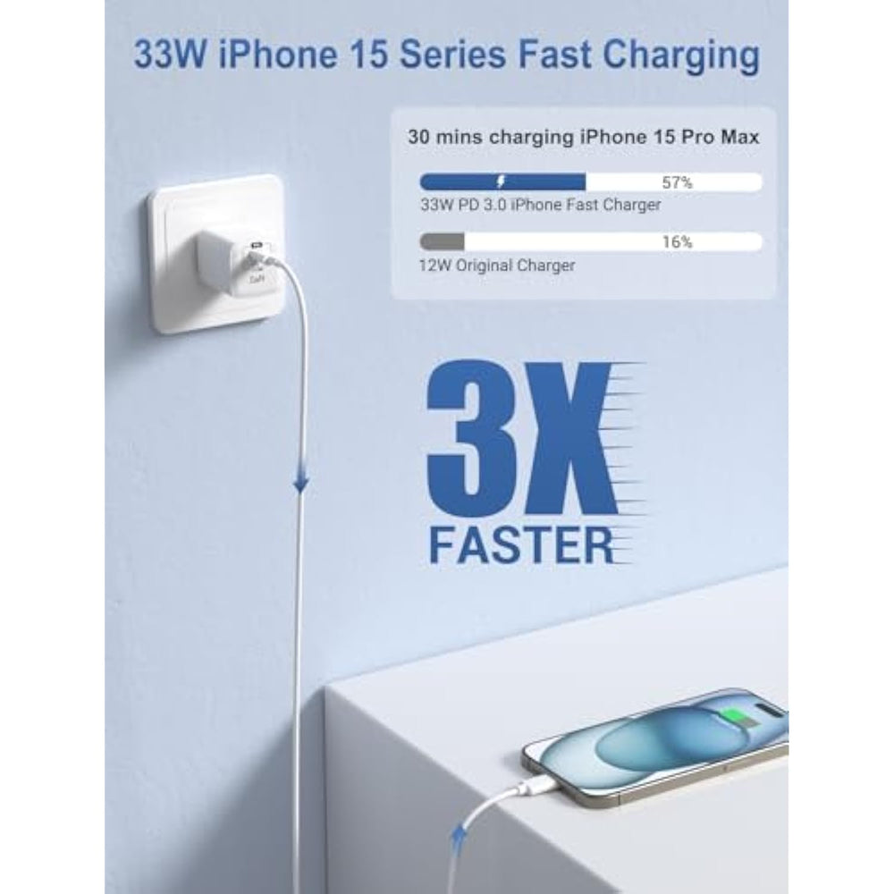 | 3X Super-Fast Charging: 33W Usb C Fast Charger Uses The Latest Gan Chipset Which Provides Full-Speed 33W Charging For Any Device. Which Charges An Iphone 15 Pro Max Up To 60% In Just 30 Minutes. It Lets You Enjoy 3X Faster Than The Original Apple Charger To Save You Valuable Time | | Gan Tech Fast Charger: Our 33W Usb C Wall Charger Is 20% Smaller Than Another Fast Charging Block, Which Allows The Fast Charger To Operate With Higher Efficiency And Produce Less Heat Than Others. Will Never Damage Your Devices, So You Can Charge Safely All Day, Every Day | | 60W Fast Charging Cable: The Included Usb-C To Usb-C Fast Charge Cable Is Built In The Original E-Marker Chip, Which Supports Usb Pd/Qc Fast Charging, It Charges Your New Iphone 15 And Macbook As Fast As The Original 60W Cable, And Data Transfer Speeds Up To 480Mbps. It Passed Ce And Rohs Electronic Safety Certifications. Built-In Laser Welding Technology, Which Ensures The Metal Part Won'T Break. The Longer Sr Anti-Break And Special Strain Relief Design Can Withstand Up To 50,000 Bend Lifespan | | Universal Compatibility: Compatible With Virtually All Usb-C Devices Including Iphone 15/Iphone 15 Plus/Iphone 15 Pro/Iphone 15 Pro Max, Ipad Pro 12.9Inch 3Rd/4Th/5Th/6Th Generation, Ipad Pro 11Inch 1St/2Nd/3Rd/4Th Generation, Ipad Air 4Th /5Th, Ipad 10Th, Ipad Mini 6Th, Macbook Air 15/13 Inch, Macbook Pro 16/15/14/13 Inch, Macbook 12 Inch, Samsung Galaxy S23/S22/S21/S20/S10/S9/S8 Series, Samsung Galaxy Note 20/10/9/8/7, Google, Lg Series And More | | What You Will Get: The Package Comes With 33W Gan Usb C Charger Block And A 6.6Ft Type-C To Type-C Cord. If You Have Any Problems With This Iphone Repaid Charger, Please Do Not Hesitate To