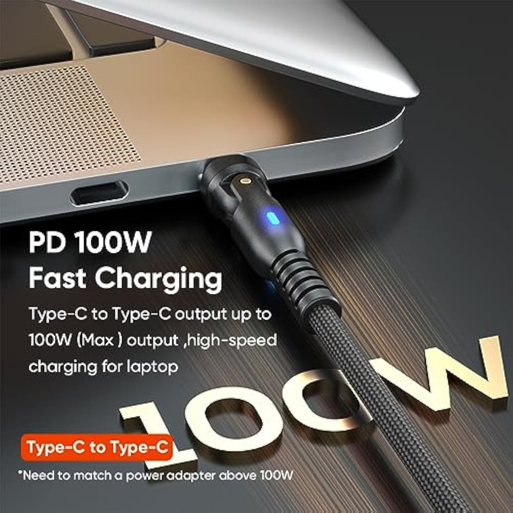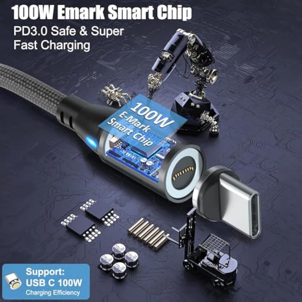 | ?540° Free Rotation?Free Your Phone Otg Port, A New Practical Design: 180°L Type +360°Rotating Magnetic Head, When Charging With The Magnetic Charging Cable, It Also Allows Us To Find A Comfortable Handheld Device Method For Gaming/Phone/Chat/Entertainment, Etc. | | ?100W Usb C Fast Charging?Type C To C Fast Charging Cable Supports Pd 3.0/4.0 Qc 3.0/4.0/5.0 Fast Charging Up To 100W Is Compatible With Usb-C Power Delivery Adapters Of Different Power Sizes, Such As 30W/45W/60W/65W/96W/100W.Pair Up Usb Type C Cable With A 100W Charger To Power Up Macbook Pro 16” Up To 40% In 30Min; Charger To Power Up Galaxy S22 Ultra Up To 100% In 1 Hour, Usb C Cord Is The Same As The Manufacturer'S Matching Charging Cable Speed.(Charger Not Included). | | ?E-Mark Chip Design? Usb-C To Usb-C Cable Is Build In The Best Power Delivery E-Mark Chip, Supports Usb Pd Fast Charging.With Greater Charging Stability Higher Efficiency. And Data Transfer Speeds Up To 480Mbps (1200 Songs Synced Per Minute). Please Note: This Android Charger Cable Data Transfer Needs To Pass Through The Usb 2.0 Usb C Port. | | ?One-Hand Operation?These Magnetic Phone Charging Cables Support Magnet Connect Automati